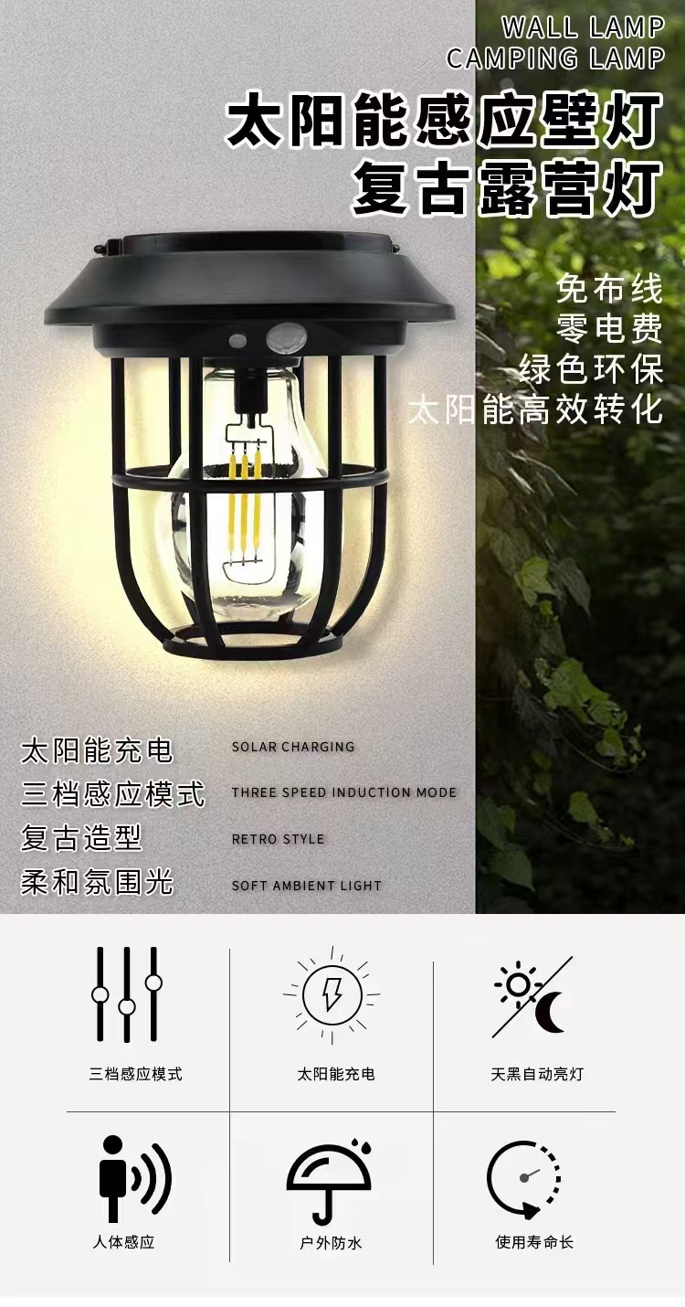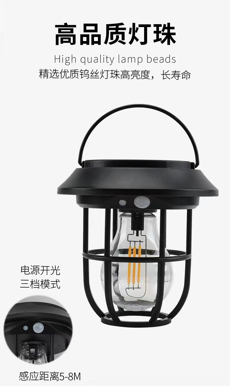 태양 에너지 유도 램프 홈 안뜰 정원 캠핑 램프 야외 안뜰 캠핑 텅스텐 램프 조명 충전식 말 램프
