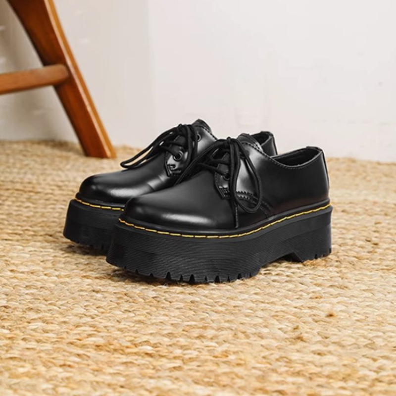 여성을위한 영국 스타일 레이스 업 작은 가죽 신발 2025 가을 새로운 공장 도매 두꺼운 밑창 캐주얼 로퍼 싱글 신발
