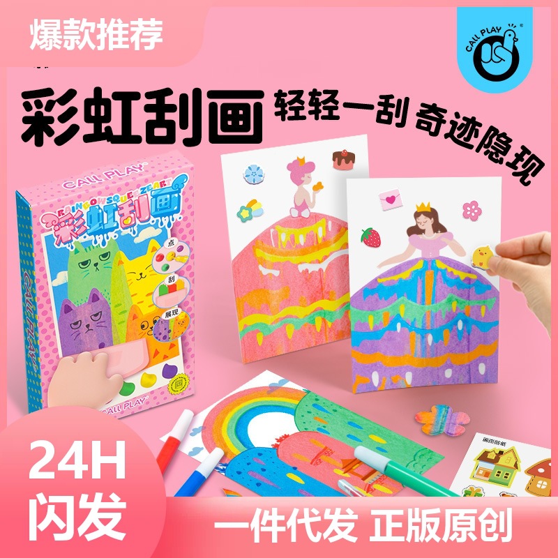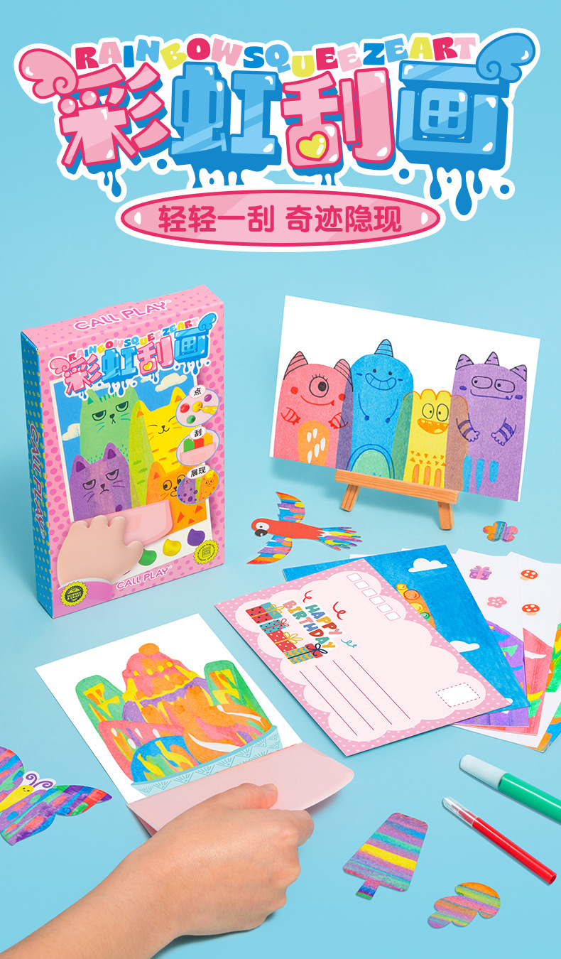 KoA 오리 무지개 도트 컬러 스크래치 diy 어린이 재미있는 북마크 수제 낙서 스크래치 종이 엽서 장난감스토어 가기