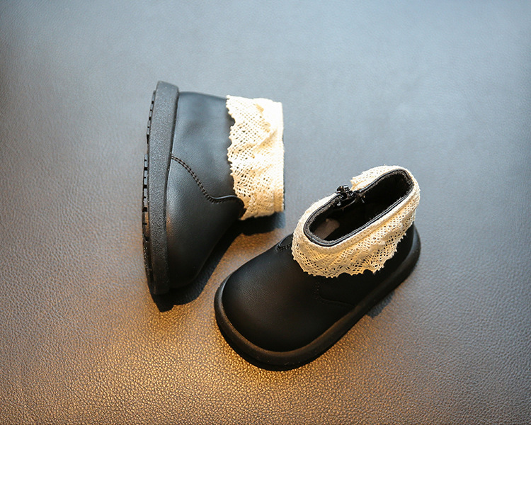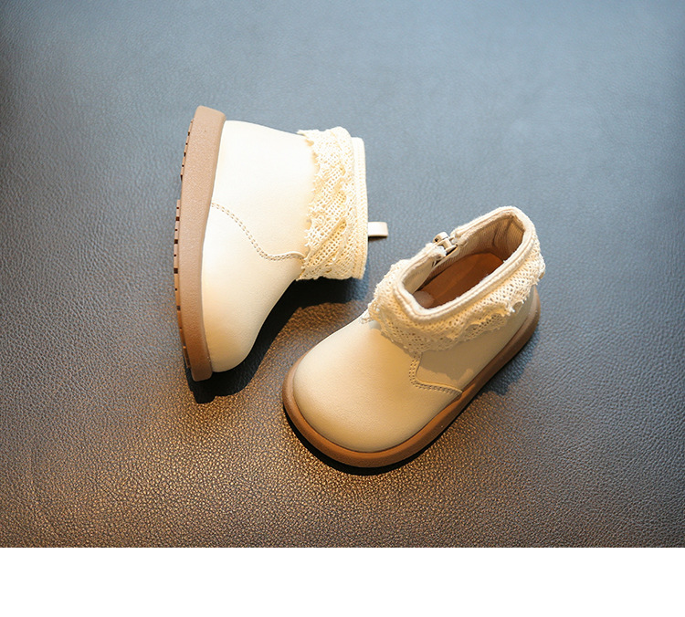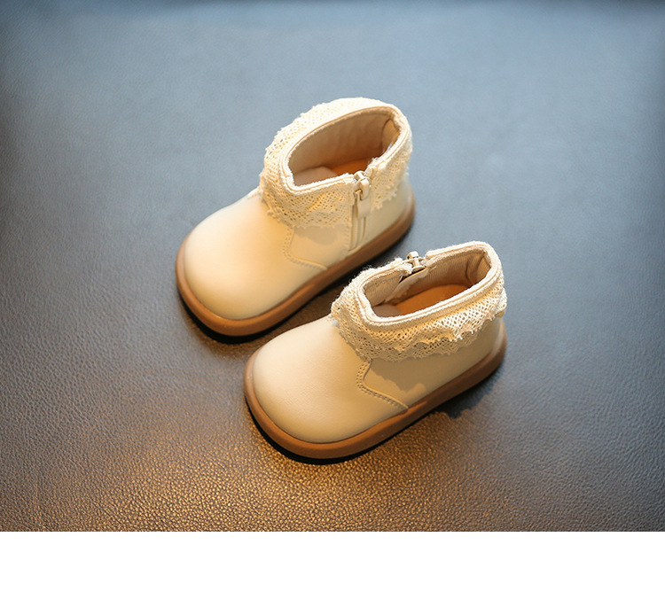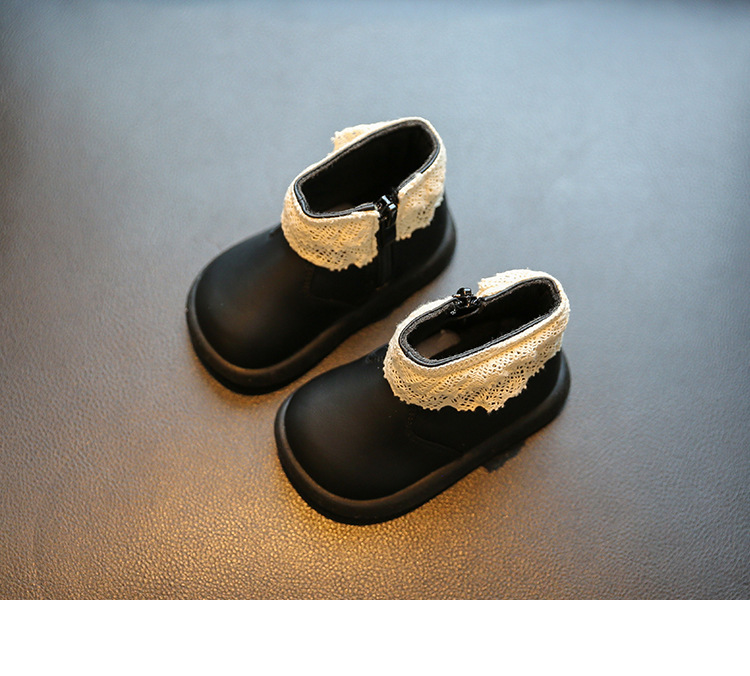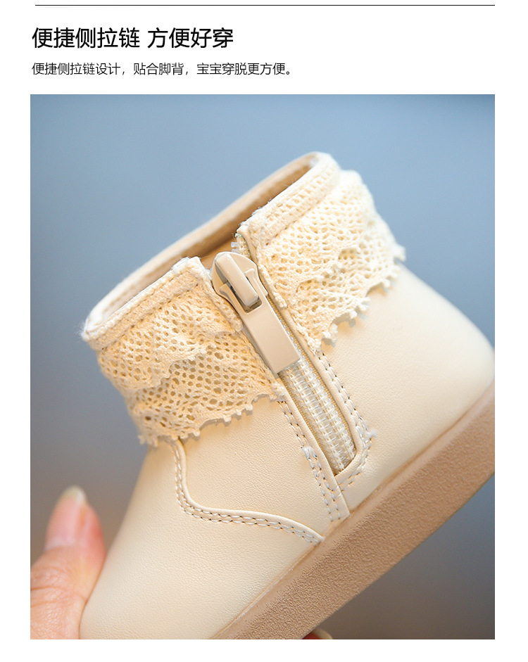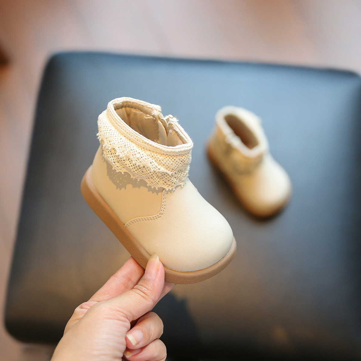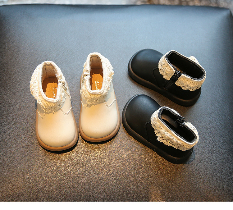 아기 소녀 신발 2024 가을 레이스 발목 부츠 소프트 단독 미끄럼 방지 아기 부츠 어린이 가죽 부츠 공주 마틴 부츠