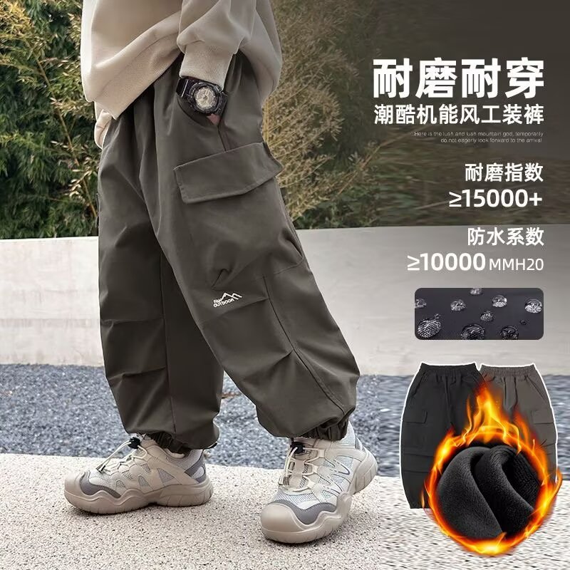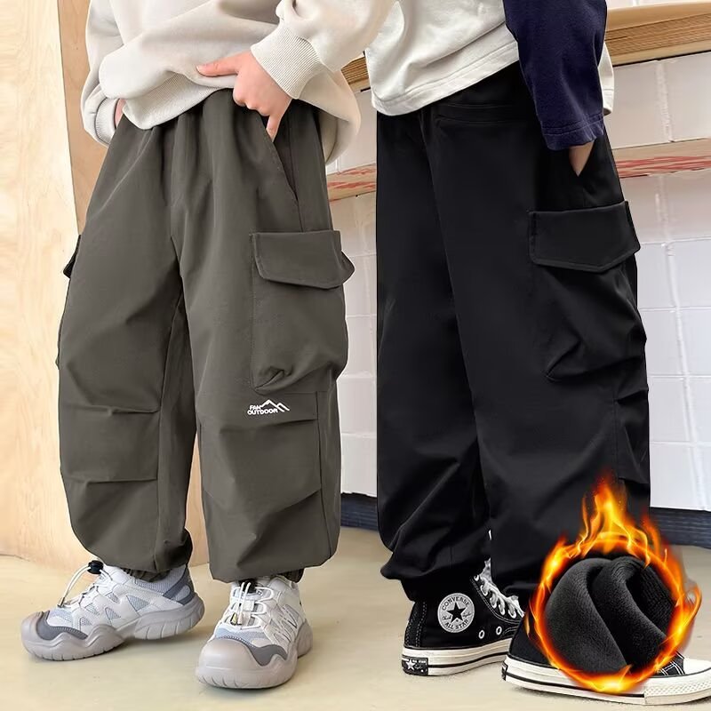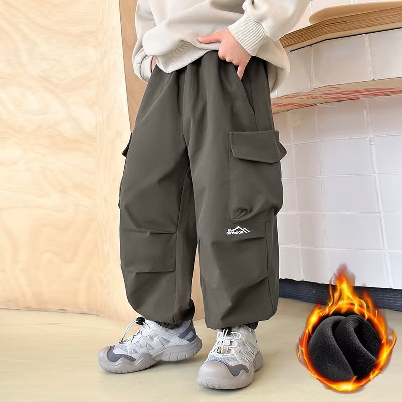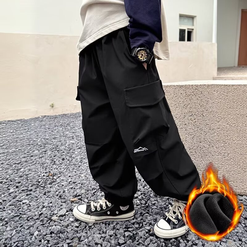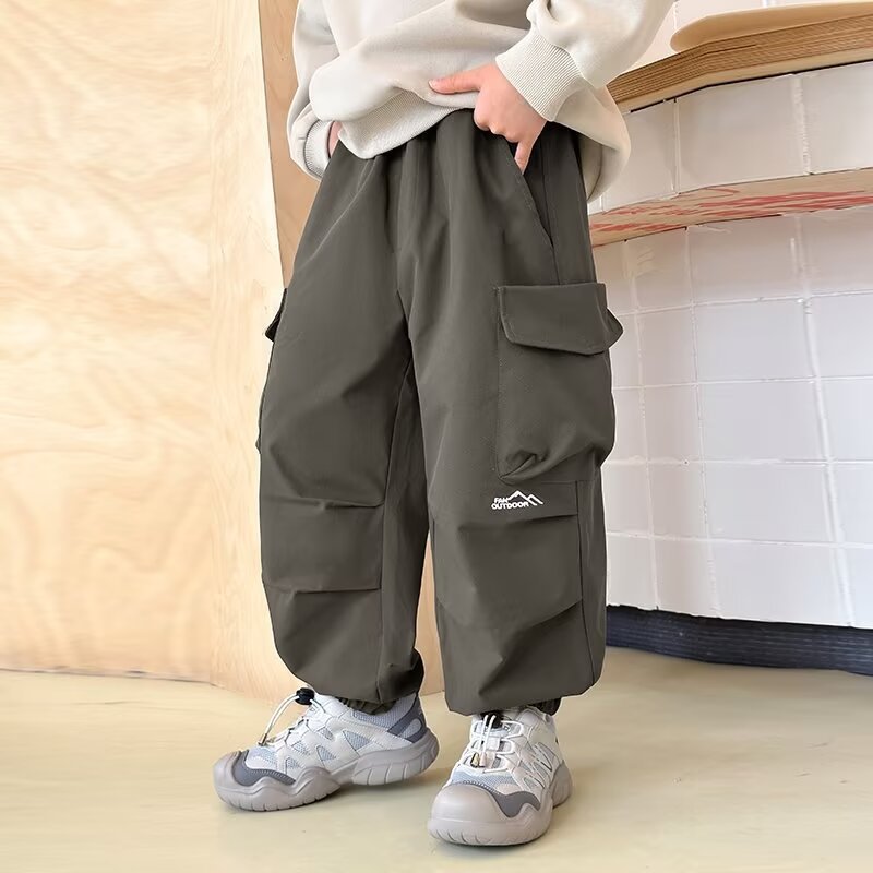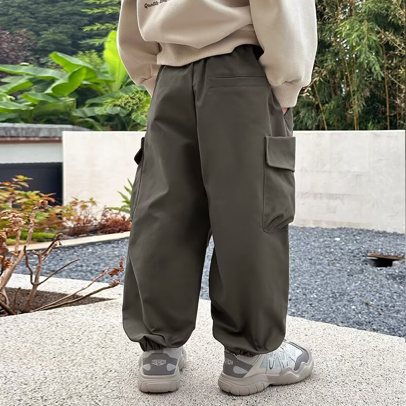 어린이 착용 소년 바지 봄과 가을 2024 새로운 어린이 쿠션 바지 큰 어린이 가을 러스크 바지 소년 캐주얼 바지