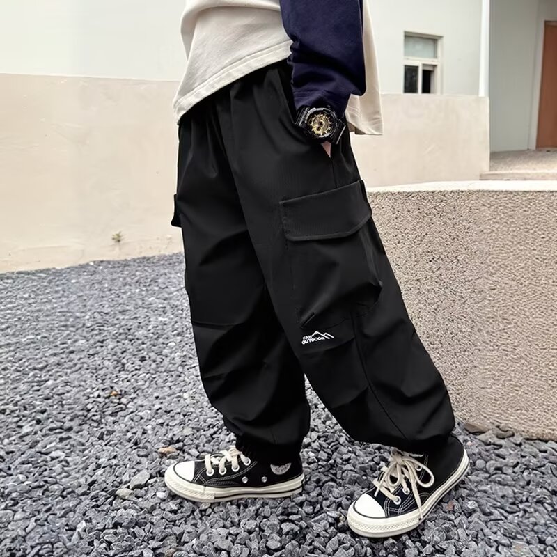 어린이 착용 소년 바지 봄과 가을 2024 새로운 어린이 쿠션 바지 큰 어린이 가을 러스크 바지 소년 캐주얼 바지스토어 가기