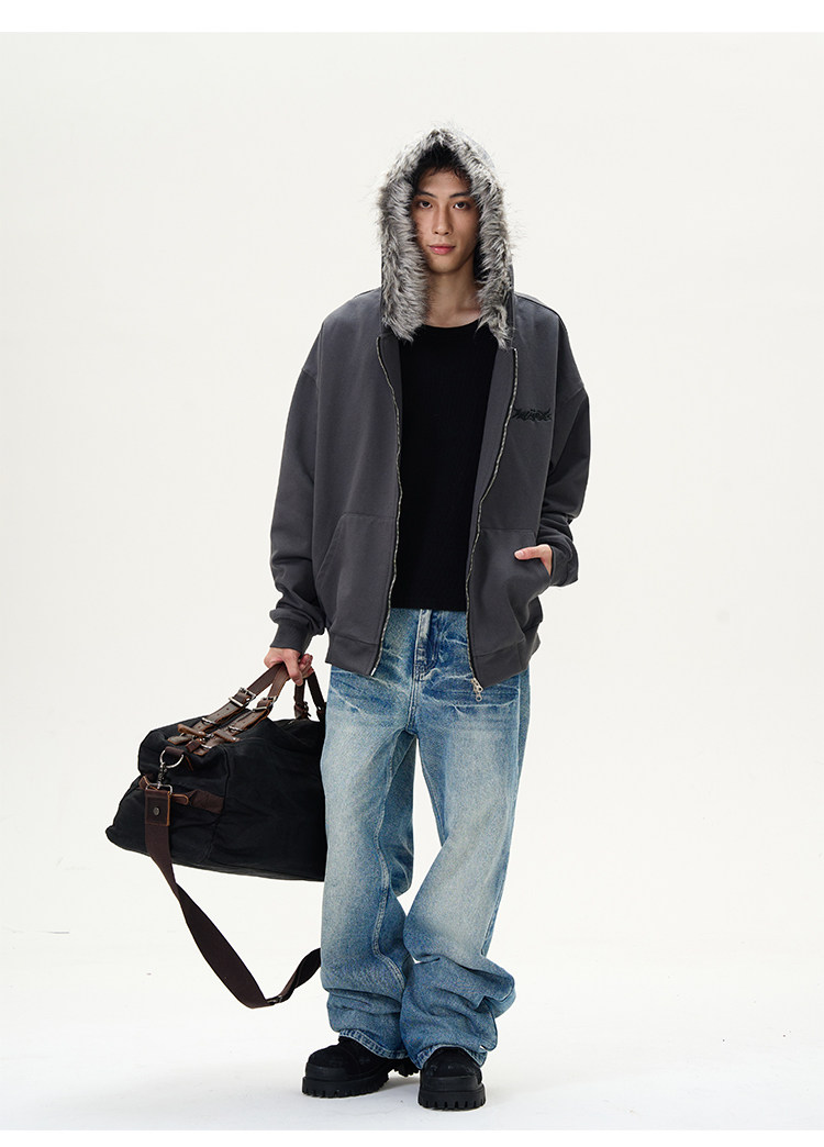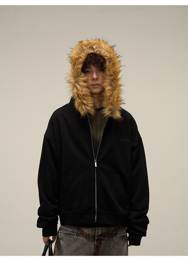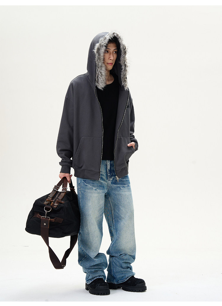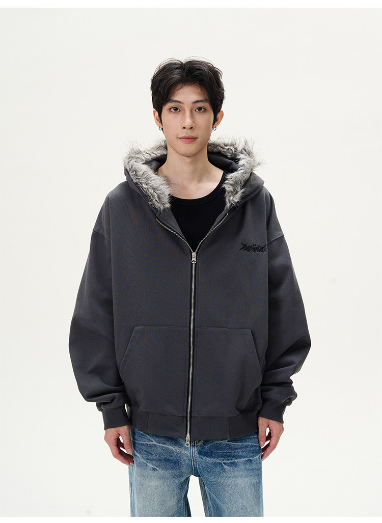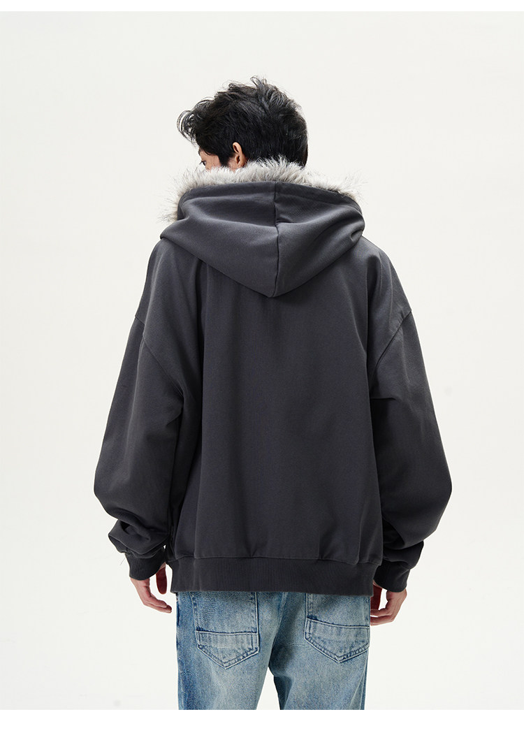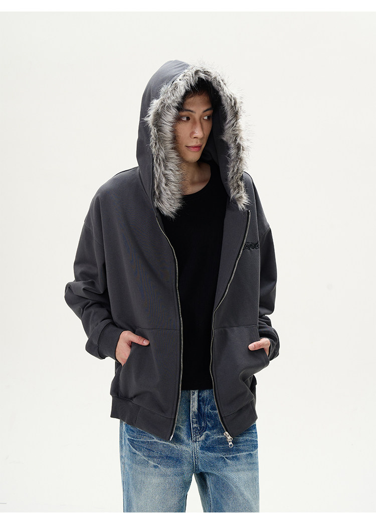 미국 레트로 울 칼라 커플 후드 지퍼 카디건 스웨터 가을과 겨울 따뜻한 하이 엔드 패션 브랜드 디자인 센스 재킷