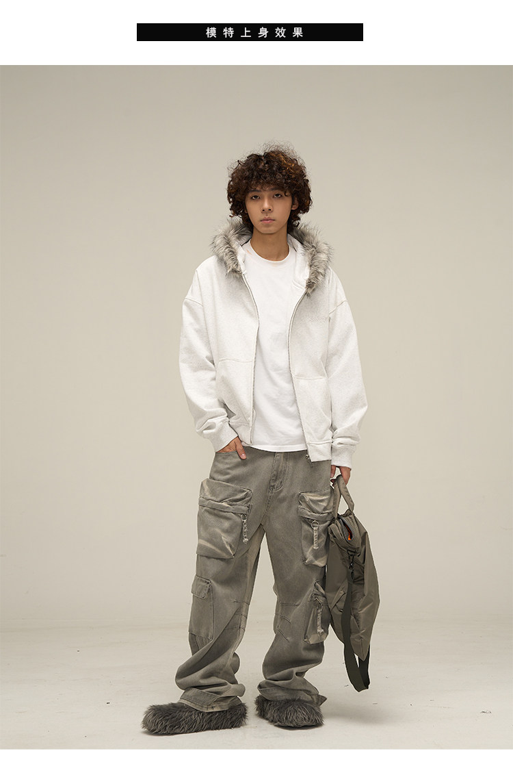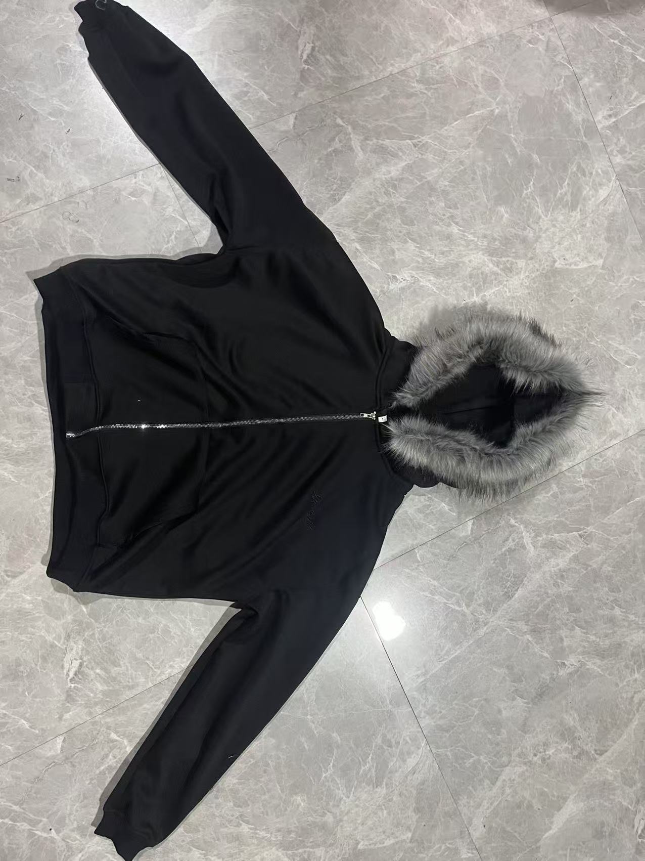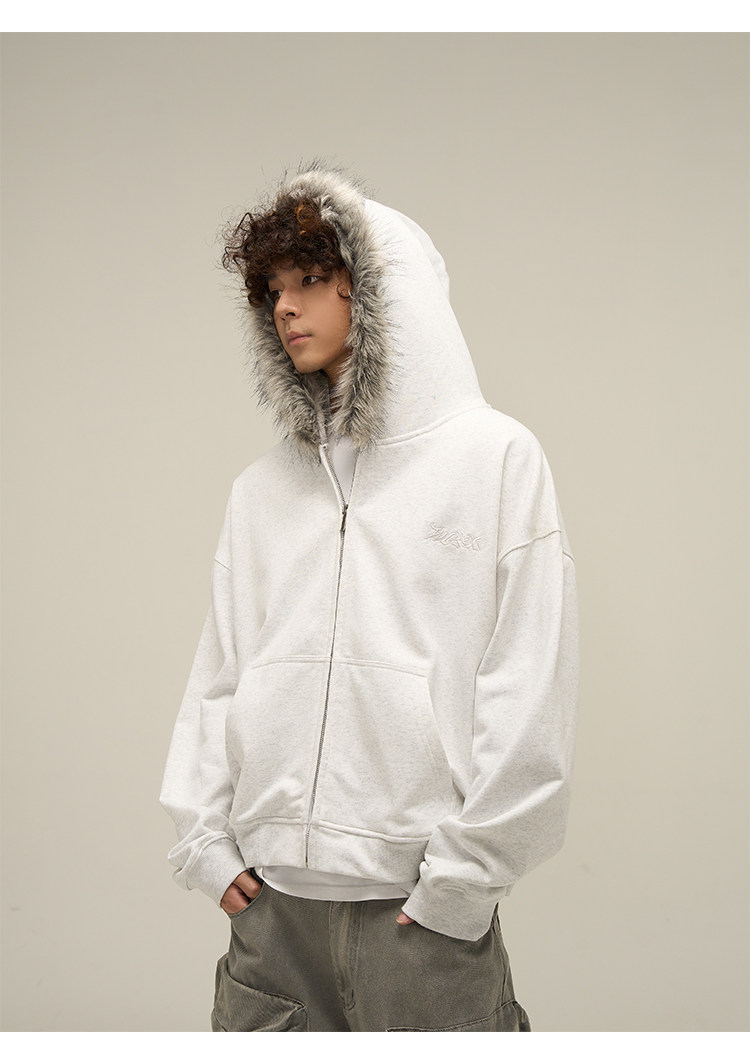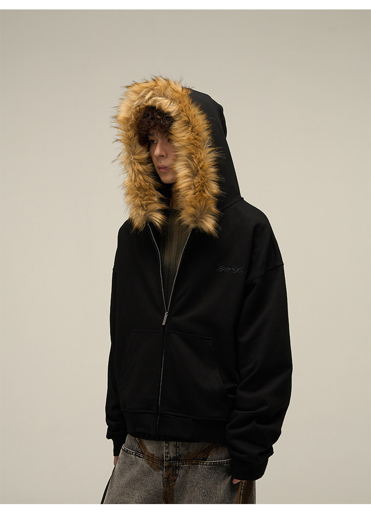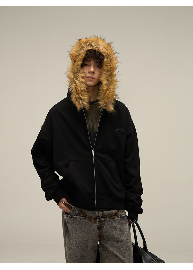 미국 레트로 울 칼라 커플 후드 지퍼 카디건 스웨터 가을과 겨울 따뜻한 하이 엔드 패션 브랜드 디자인 센스 재킷