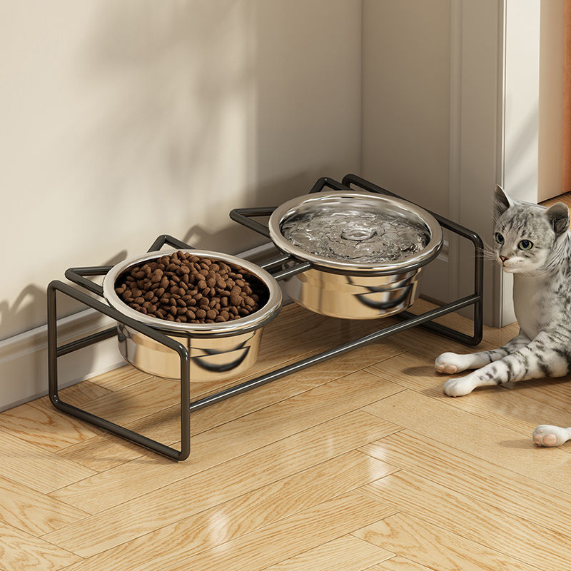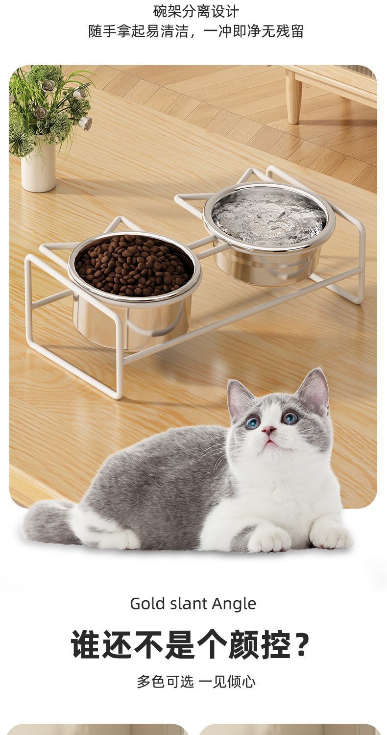 고양이 밥 그릇 개 먹이 분지 304 스테인레스 스틸 애완 동물 그릇 증가 목 보호 방지 노크 개 먹이 모두스토어 가기