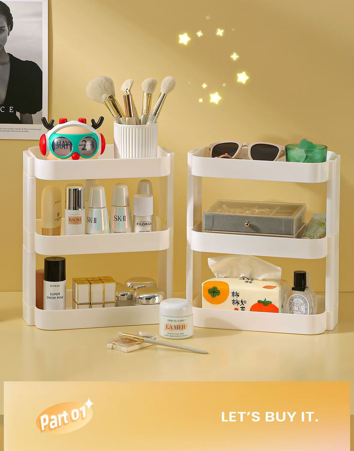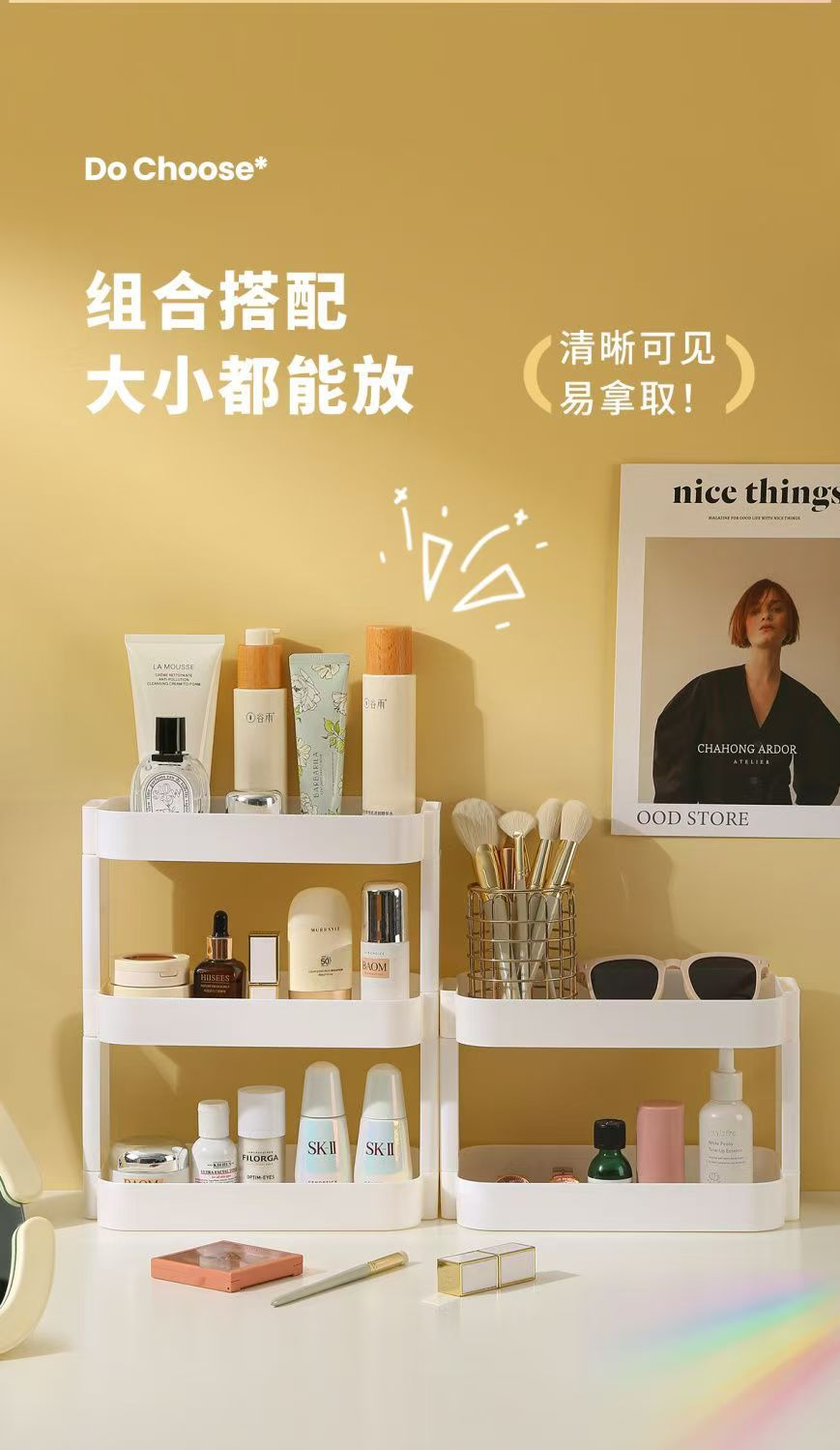 간단한 데스크탑 스토리지 박스 스토리지 랙 화장품 다층 오버레이 학생 데스크 사무실 침대 옆 책장 컴퓨터 책상스토어 가기