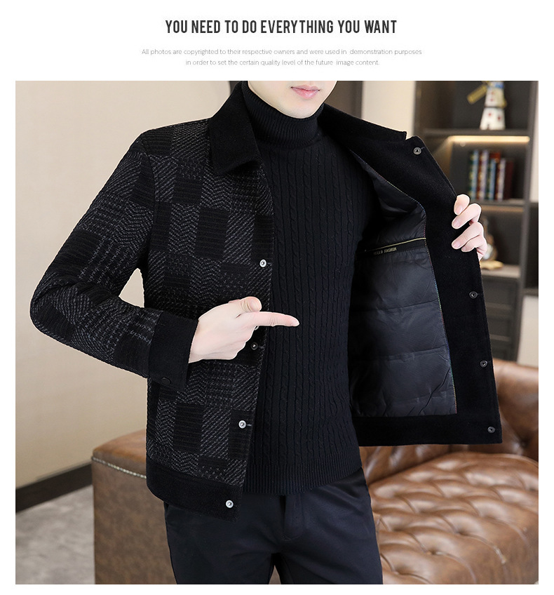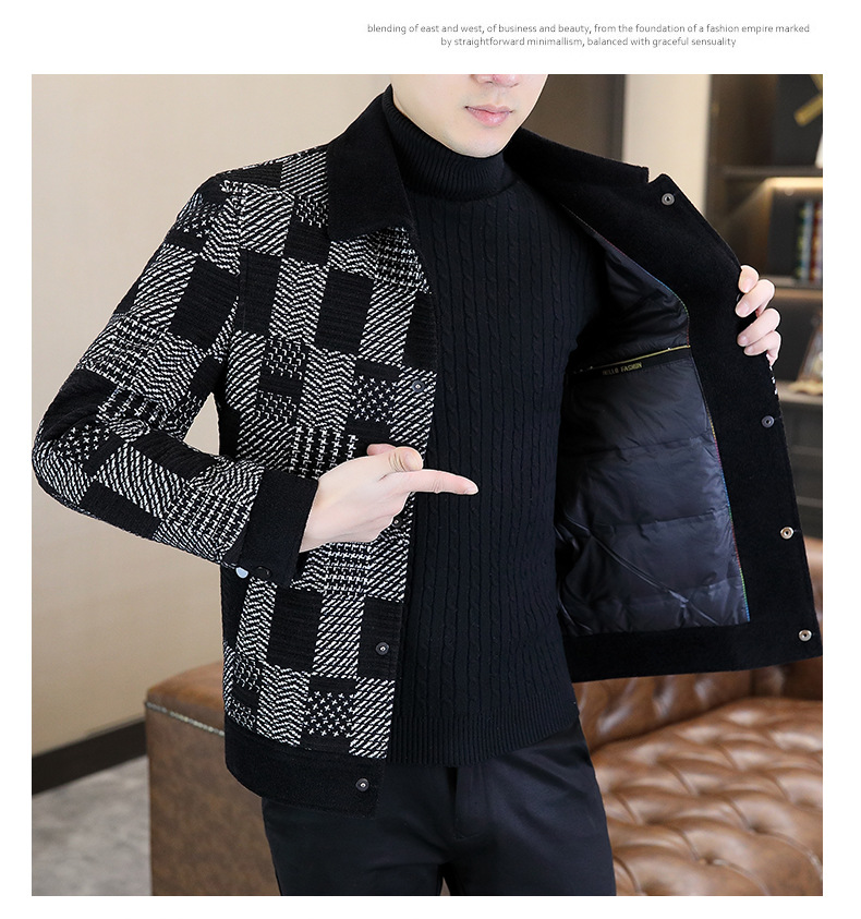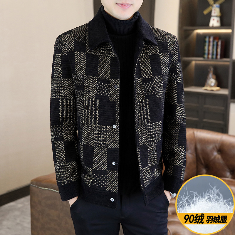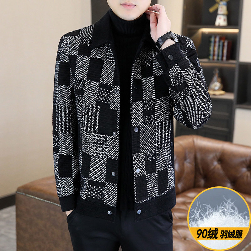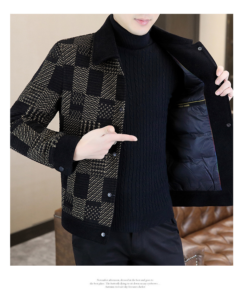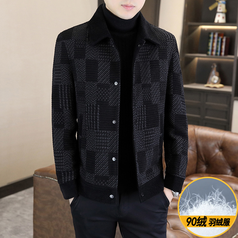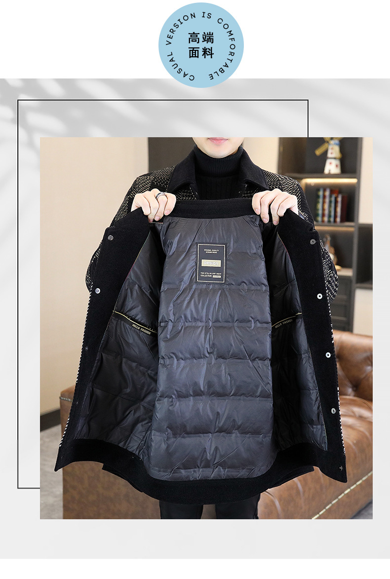 남자 다운 재킷 짧은 모직 재킷 겨울 사업 캐주얼 모직 코트 화이트 덕 다운 격자 자켓스토어 가기