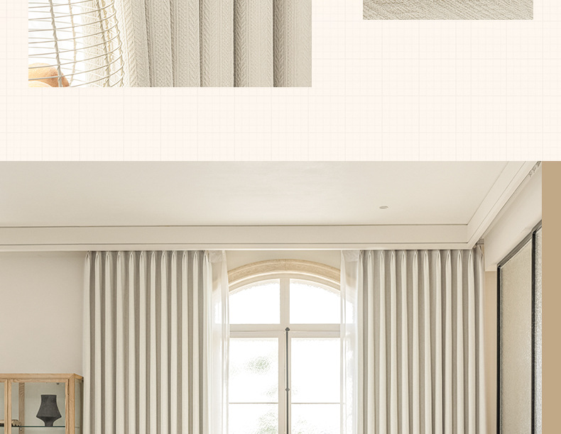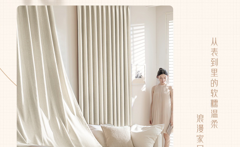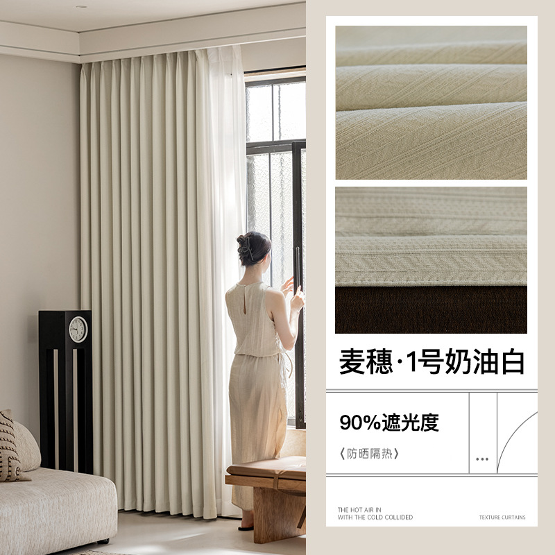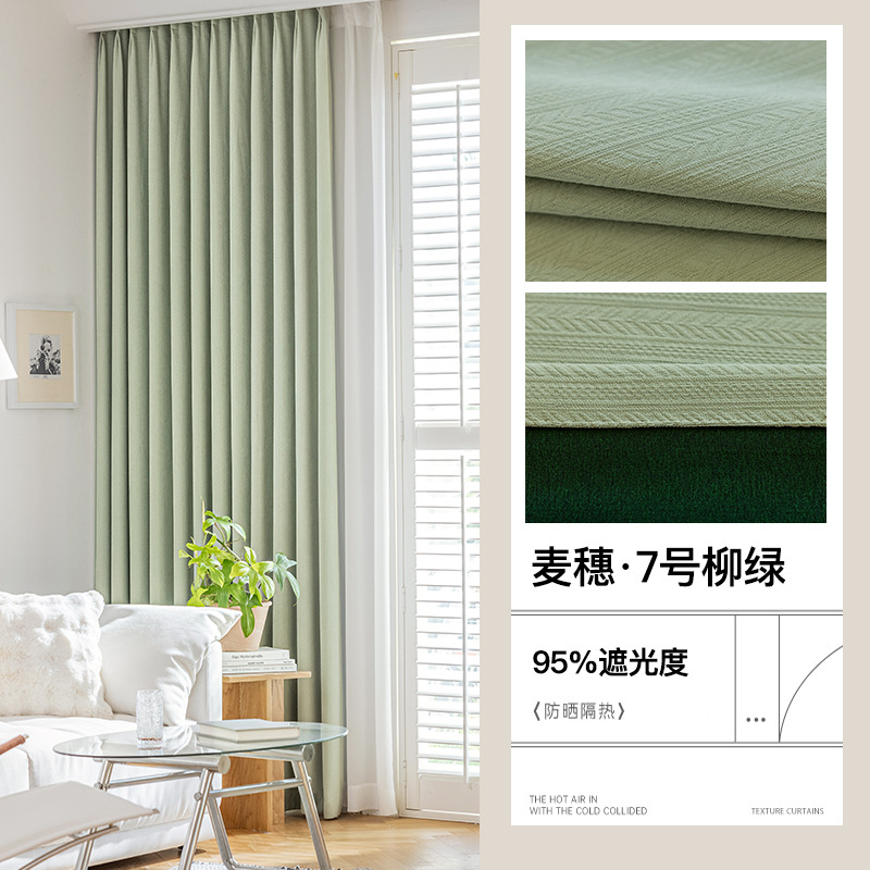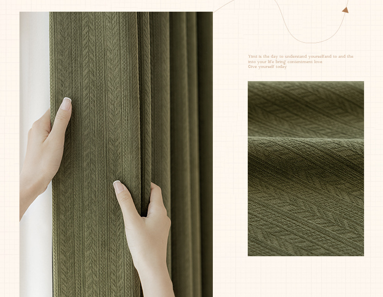 프렌치 자카드 커튼, 빛 차단 크림, 복고풍 녹색, 거실 및 침실, 고급 두꺼운 셔닐 커튼, Shaoxing스토어 가기