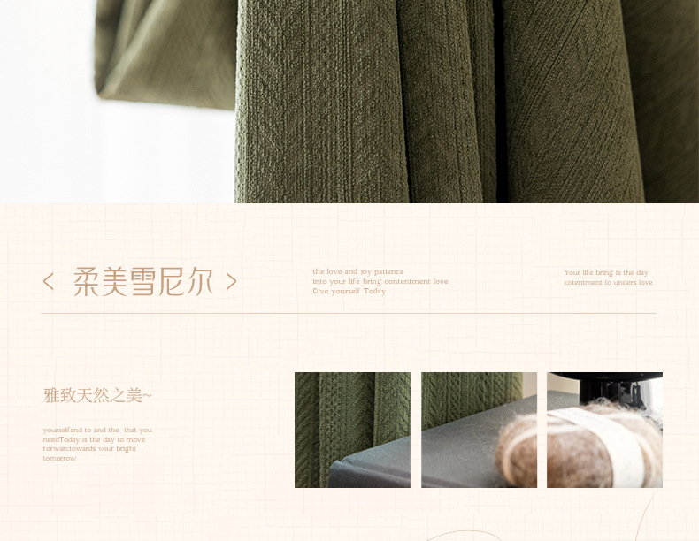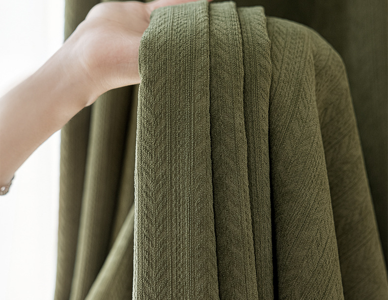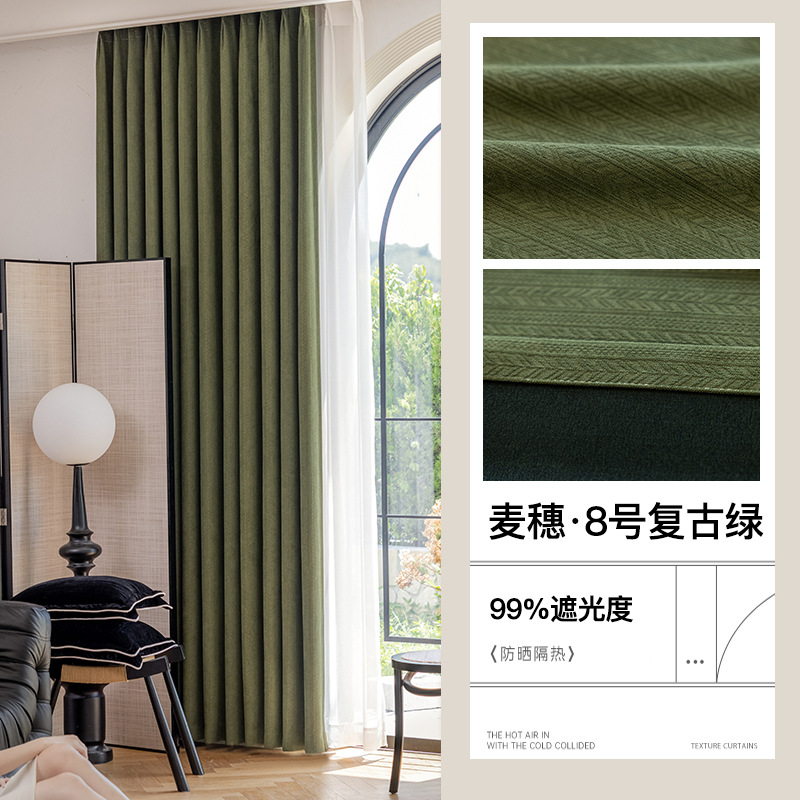 프렌치 자카드 커튼, 빛 차단 크림, 복고풍 녹색, 거실 및 침실, 고급 두꺼운 셔닐 커튼, Shaoxing