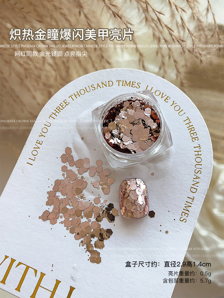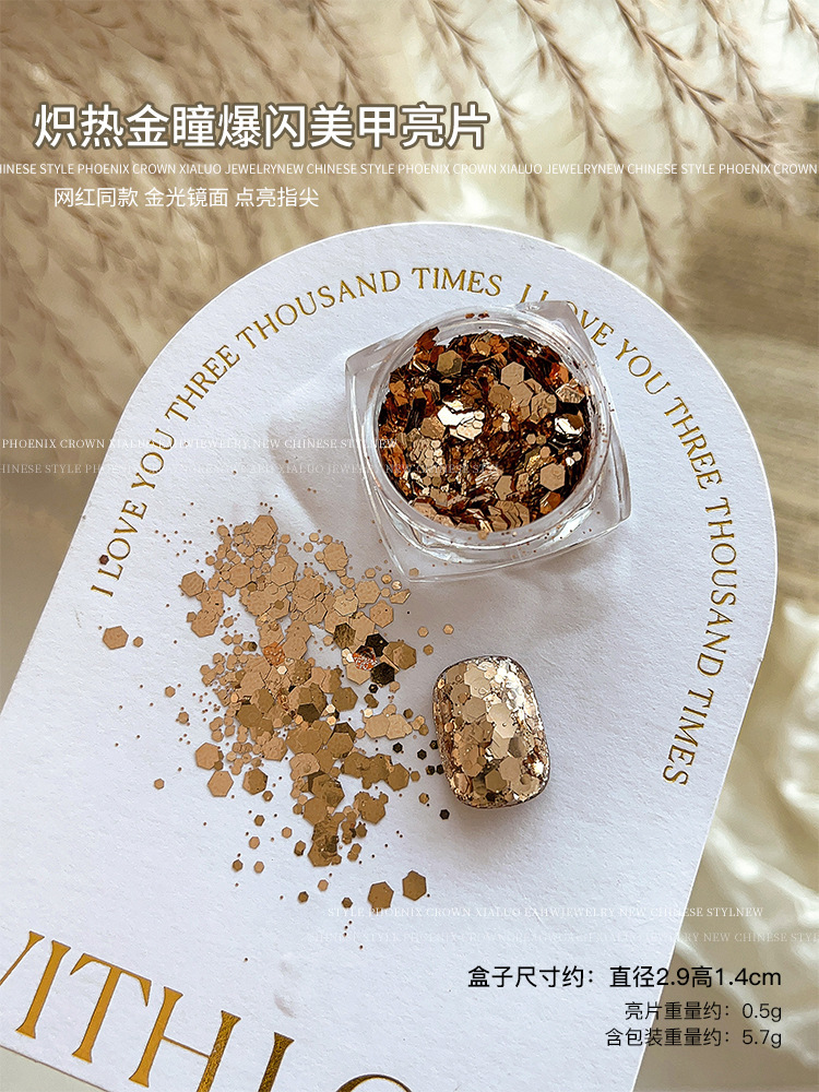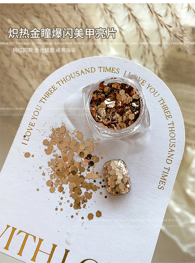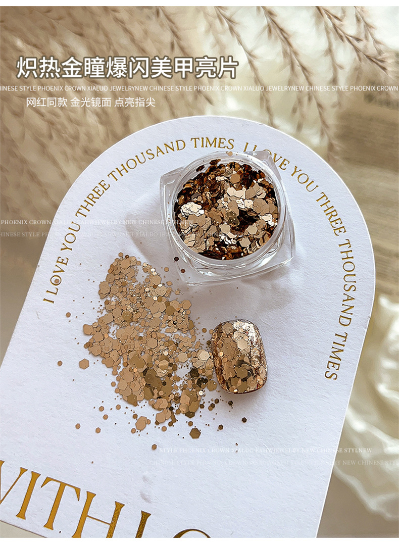 새로운 뜨거운 황금 동공 스팽글 네일 아트 액세서리 박스 매직 컬러 절묘한 아름다운 플래시 착용 갑옷 장식 도매
