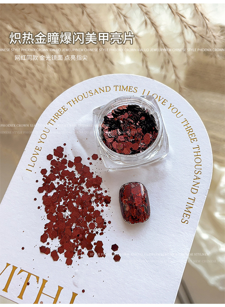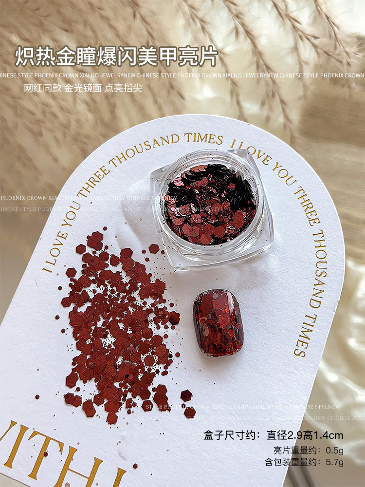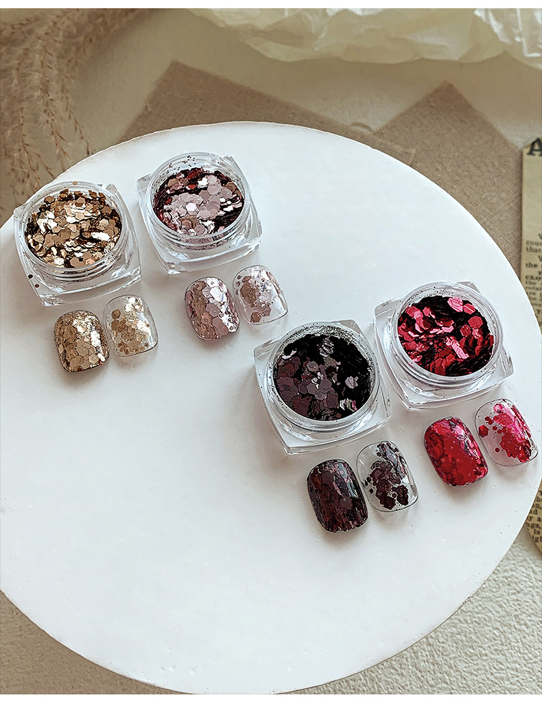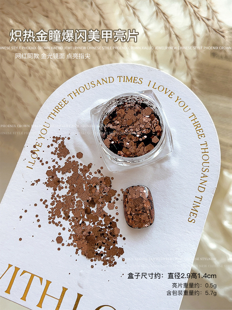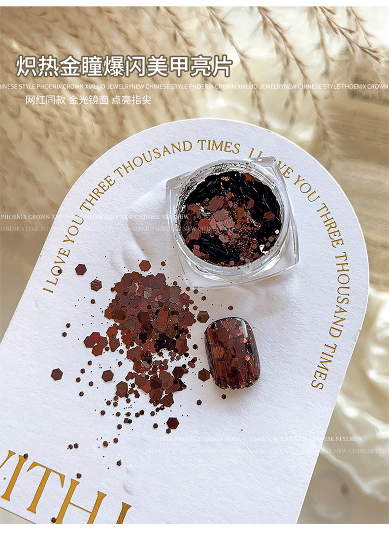 새로운 뜨거운 황금 동공 스팽글 네일 아트 액세서리 박스 매직 컬러 절묘한 아름다운 플래시 착용 갑옷 장식 도매