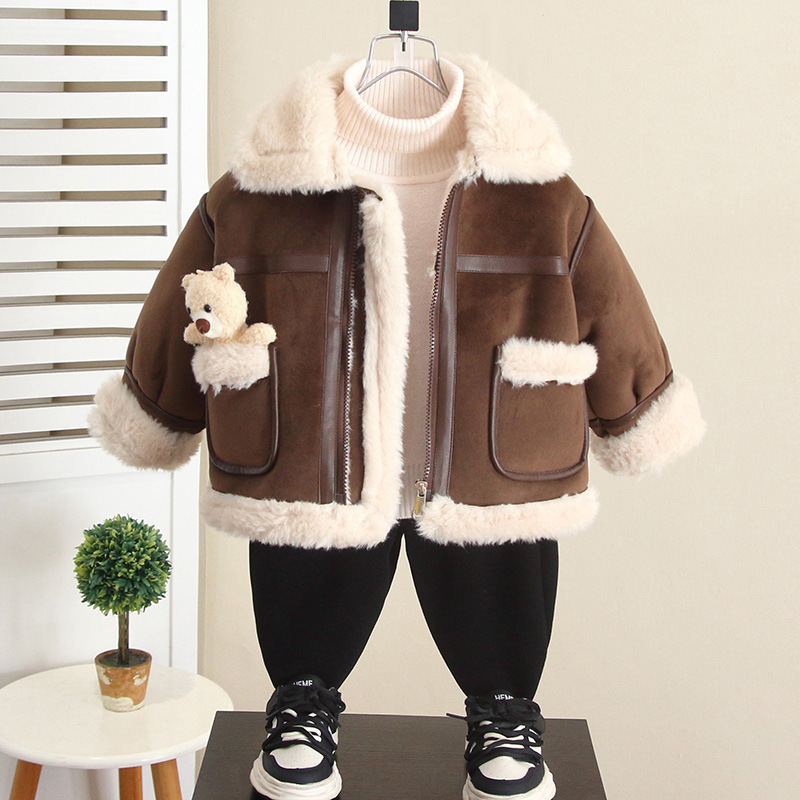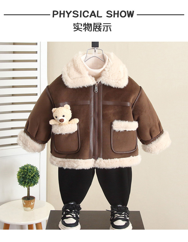 6755 소년 기모 두꺼운 코트 가을과 겨울 2024 겨울 새 어린이 모직 코트 아기 옷 조수스토어 가기