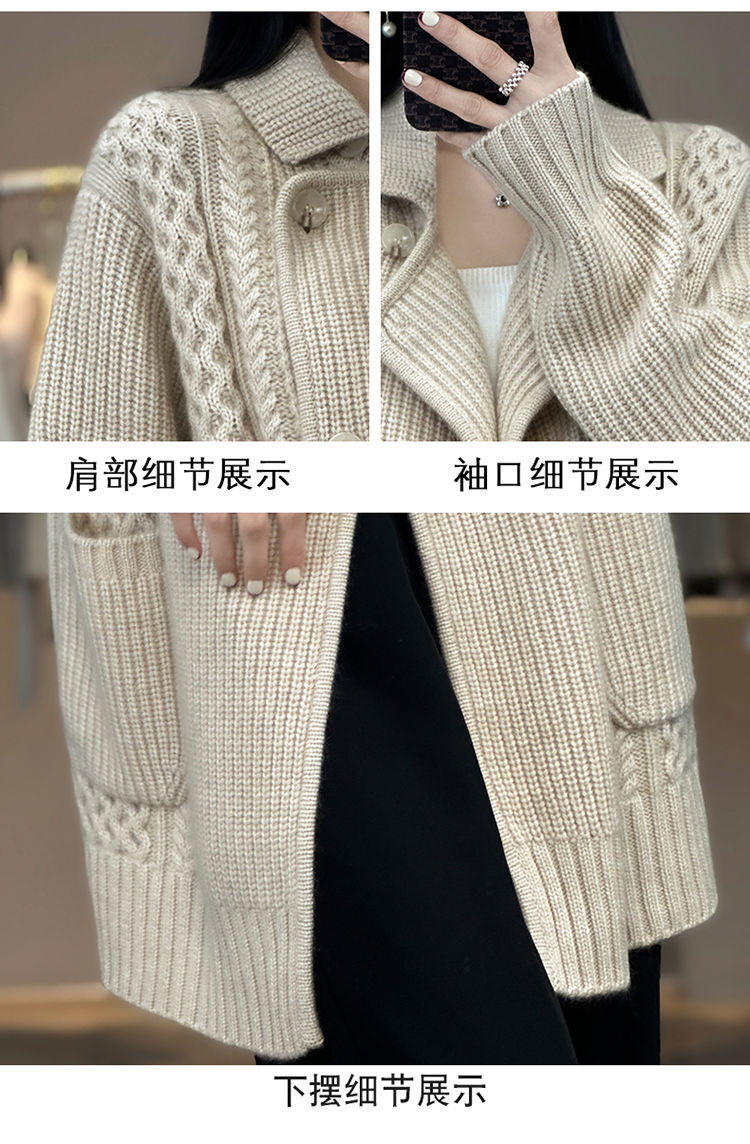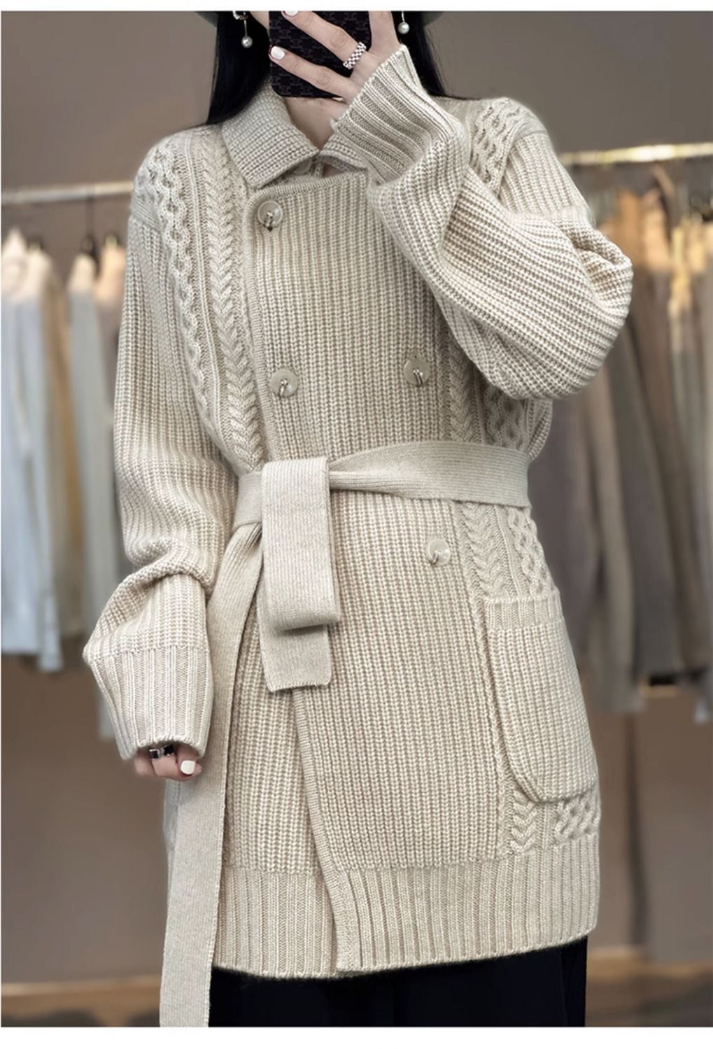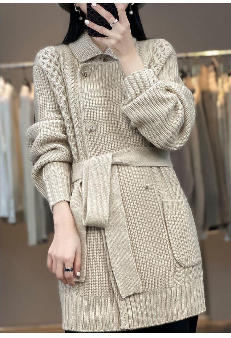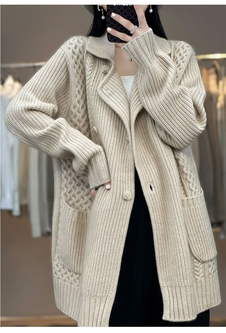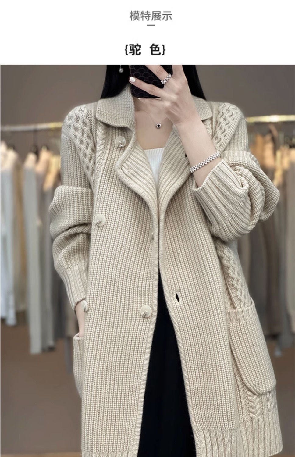 새로운 두꺼운 중간 길이의 스웨터 카디건 코트 여성 캐주얼 올 매치 우아한 캐주얼 루즈 웨스턴 스타일 니트 스웨터