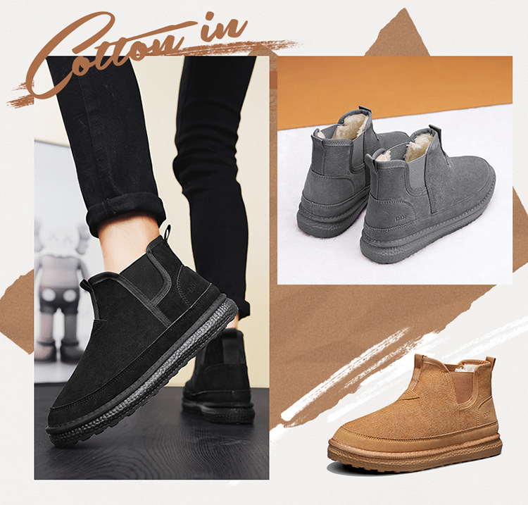 스노우 부츠 남자의 겨울 새로운 따뜻한 코튼 신발 두꺼운 단독 증가 미끄럼 방지 게으른 야외 코튼 부츠 기모 두꺼운 남성 신발