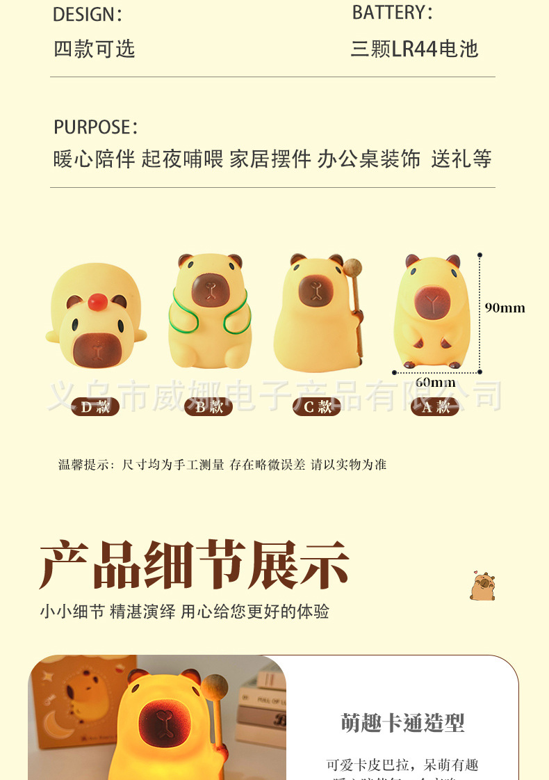 국경 간 폭발 Kapi Barra 귀여운 명소 야간 조명 침실 기숙사 창조적 인 분위기 데스크탑 장식 램프 생일 선물
