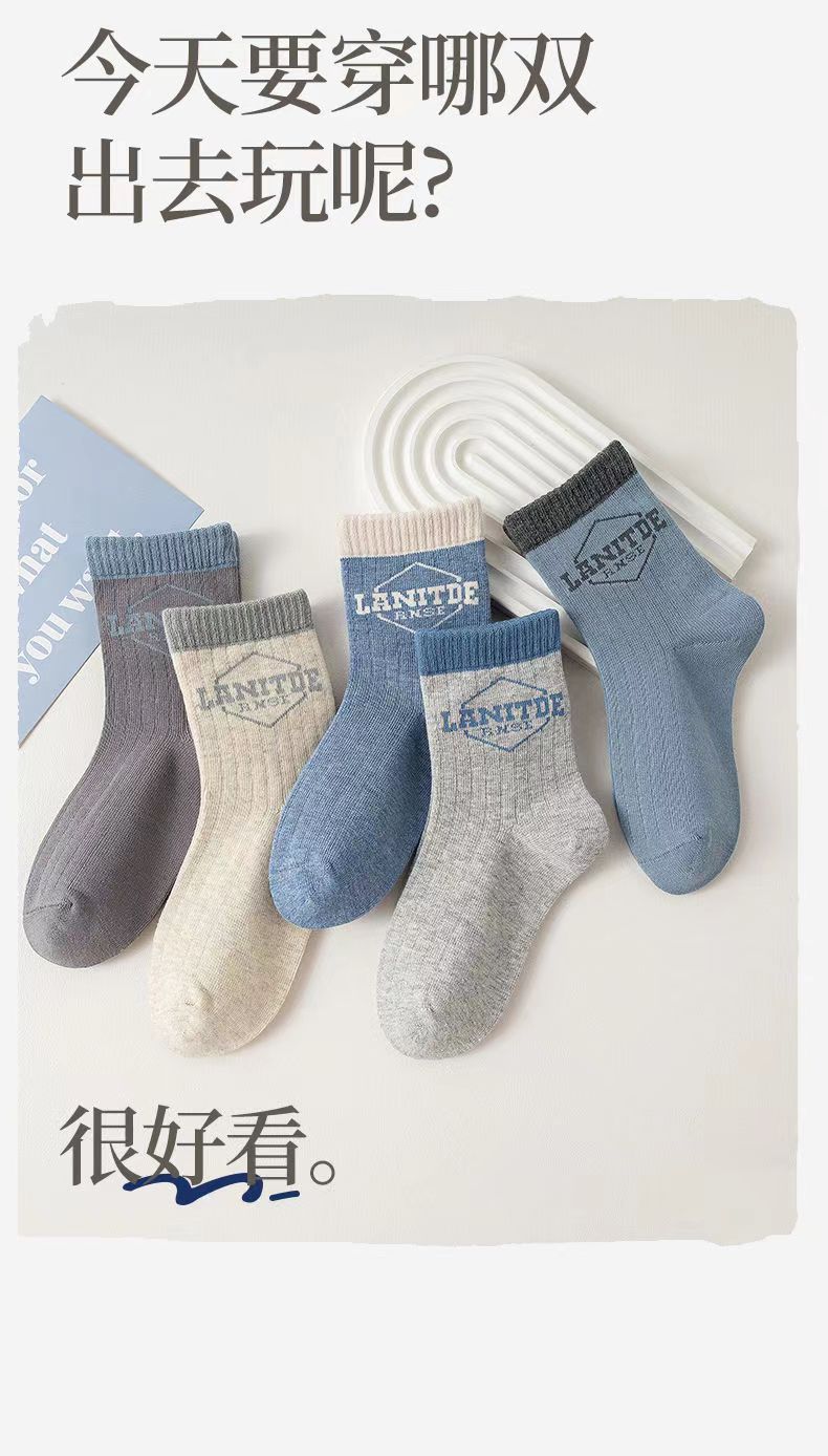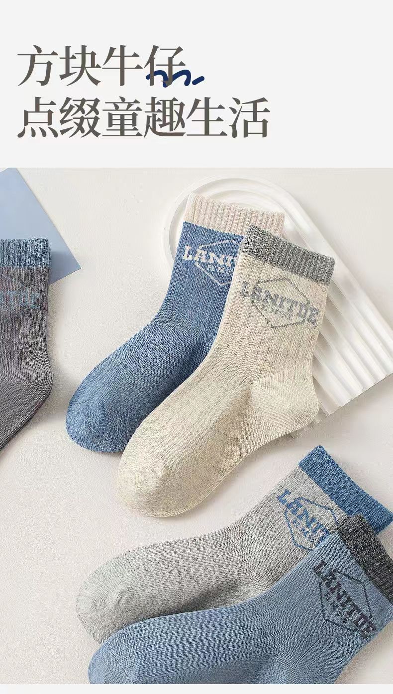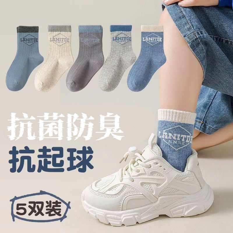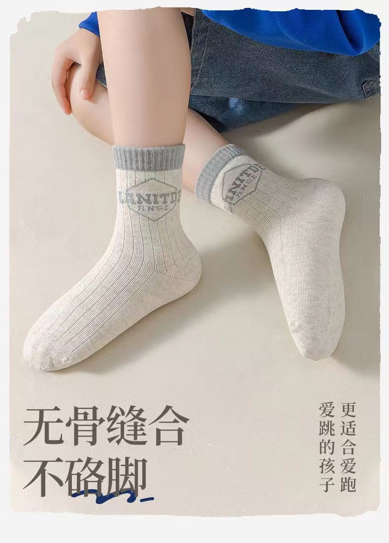 어린이 양말 소년 봄 및 가을 스포츠 중 큰 어린이 학생 가을 및 겨울 소년 통기성 양말 중간 튜브 어린이 양말