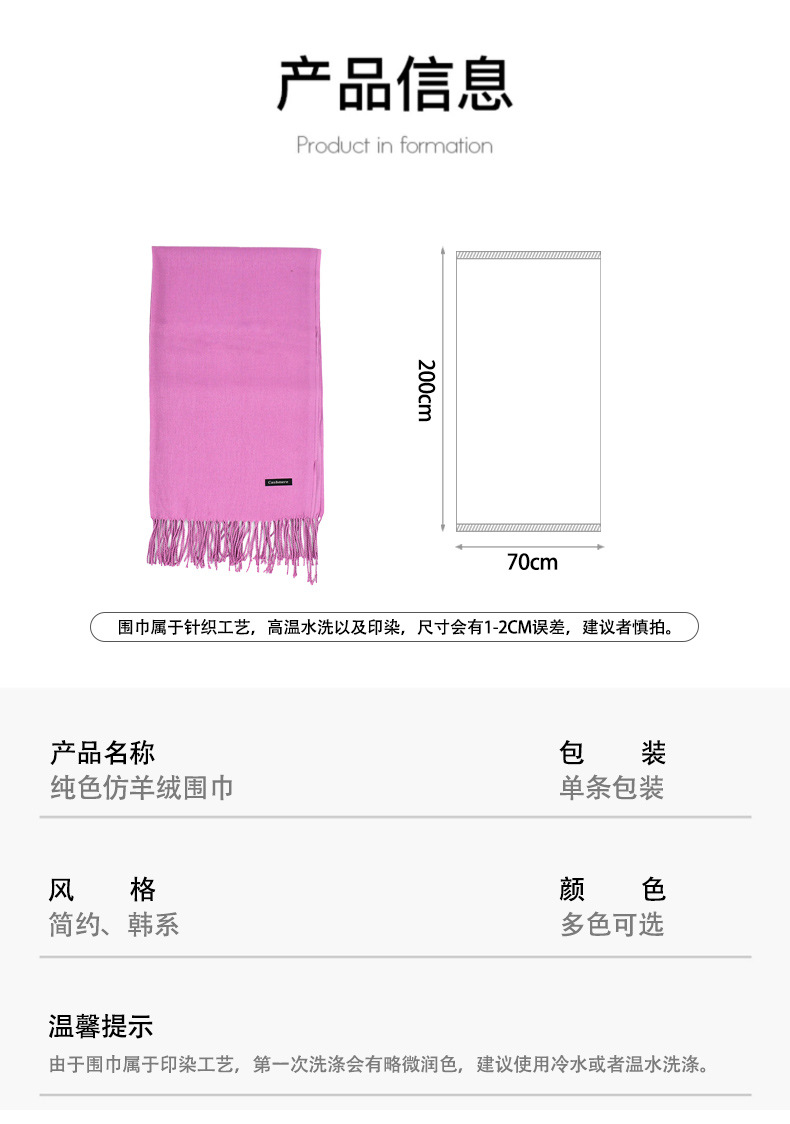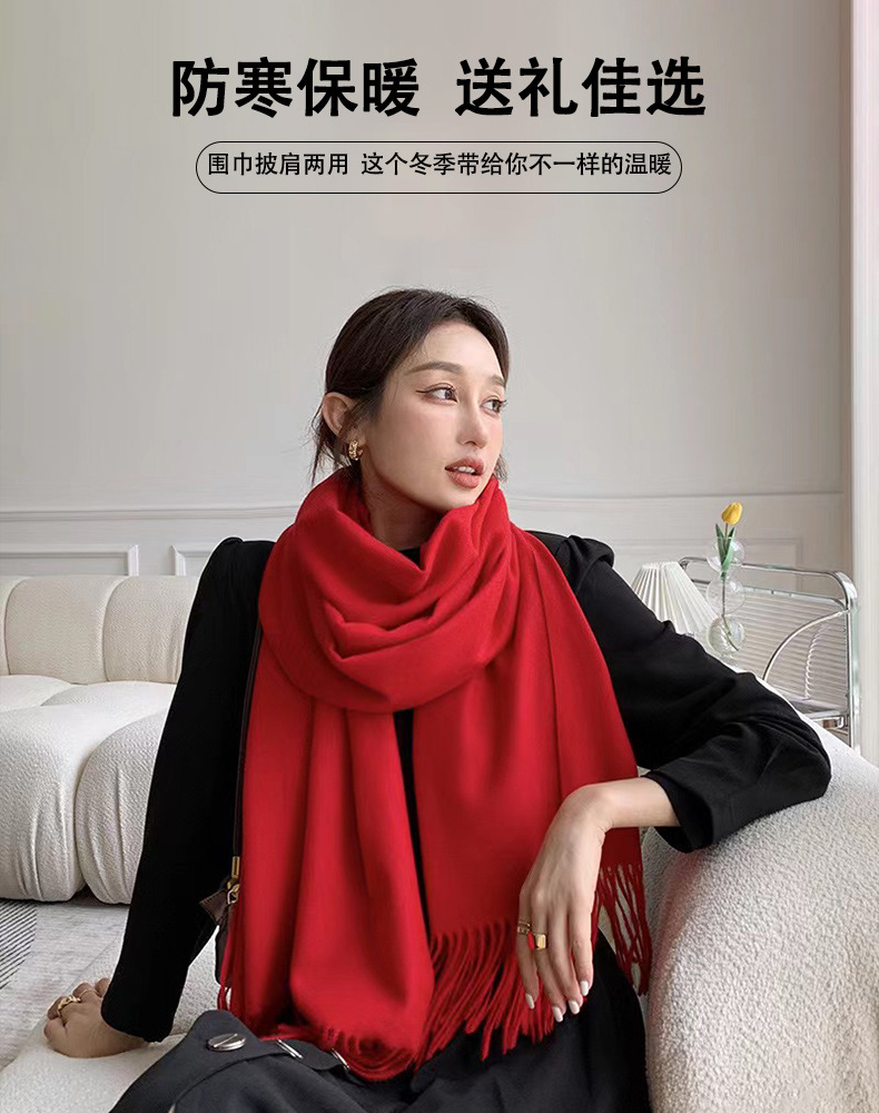 한국식 가을 · 겨울 단색 캐시미어 스카프 고급 크로스보더 레드 올매치 술 니트 스카프 목도리