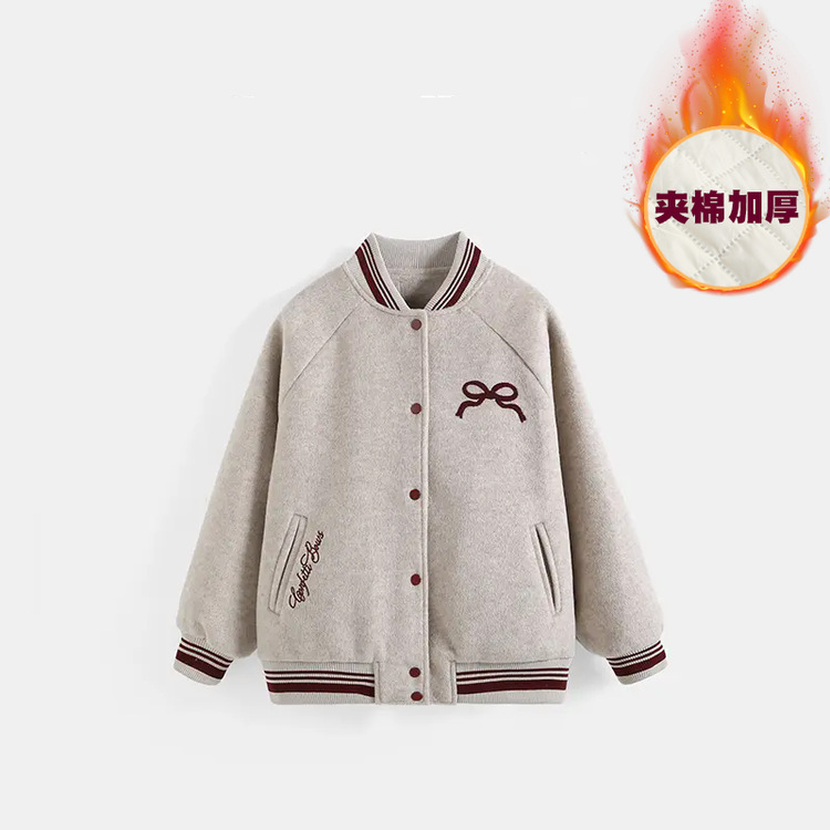 소녀들의 가을과 겨울 새로운 자수 모직 코트 2024 한국식 서양식 두꺼운 초대형 야구 코트