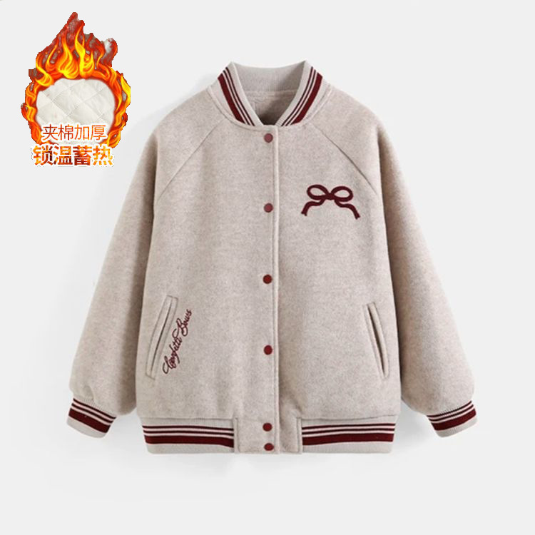 소녀들의 가을과 겨울 새로운 자수 모직 코트 2024 한국식 서양식 두꺼운 초대형 야구 코트스토어 가기