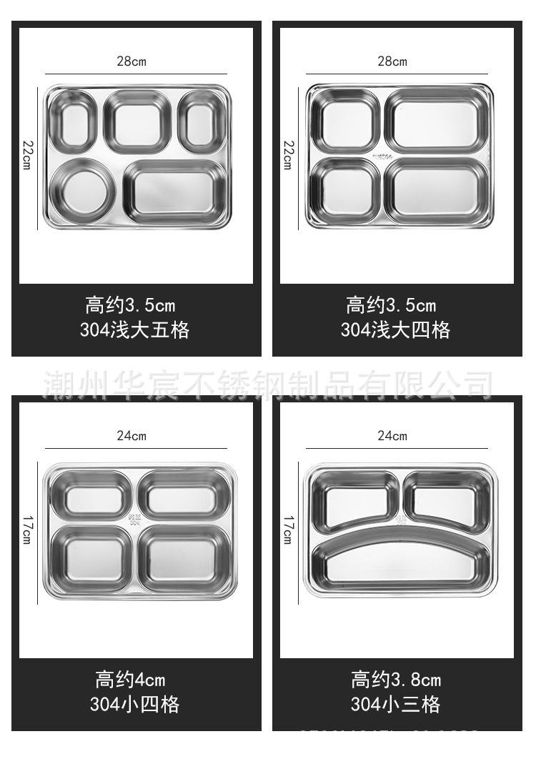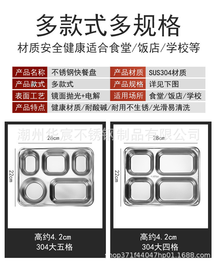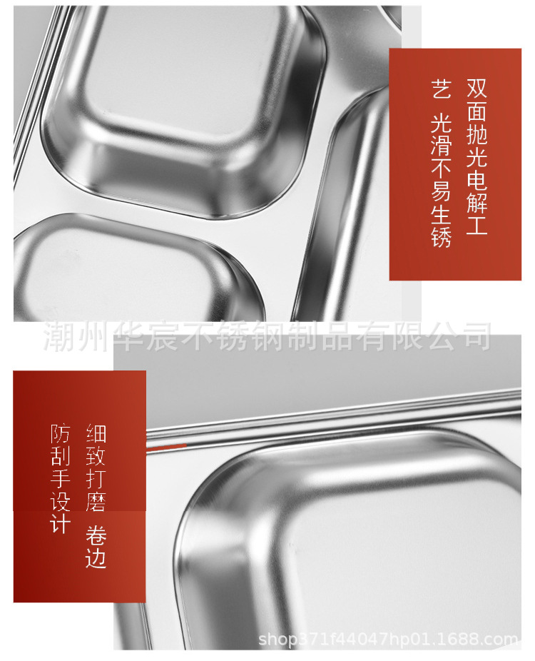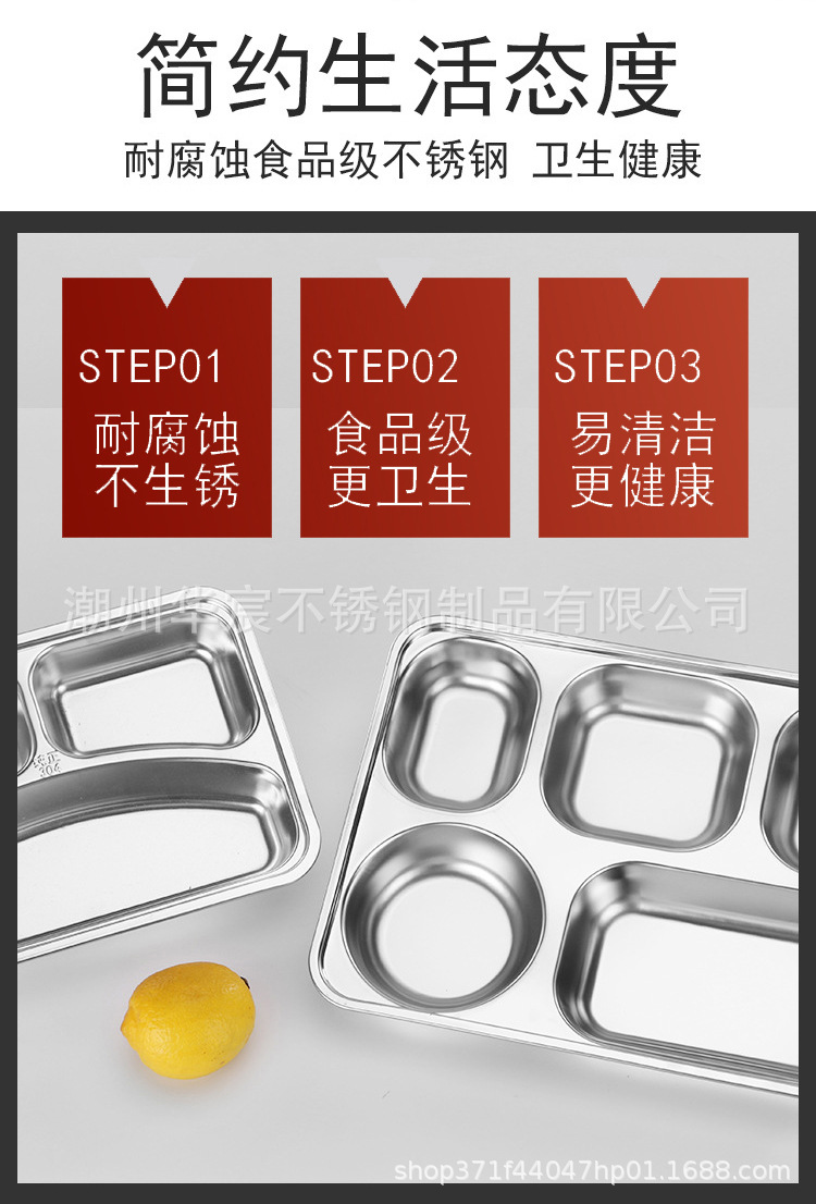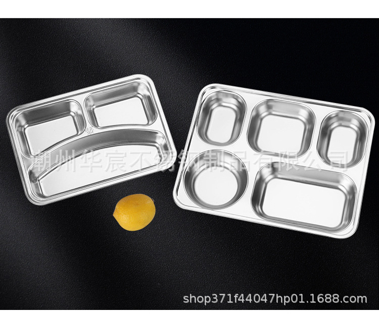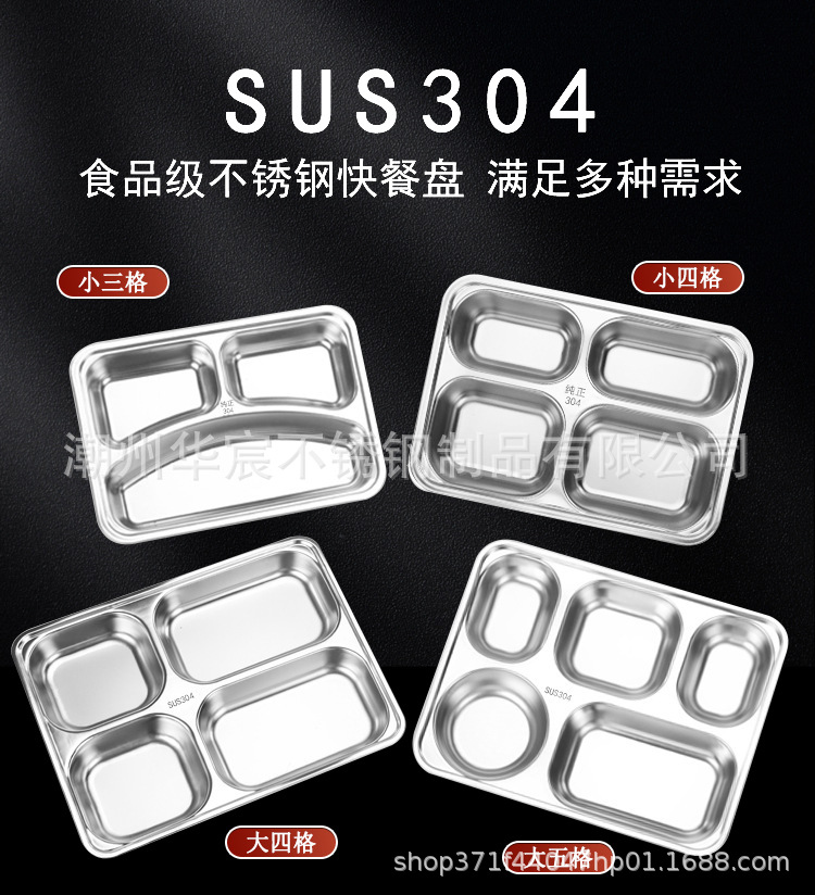 스테인레스 스틸 패스트 푸드 접시, 칸막이가 있는 구내식당 도시락, 성인용 사각형 디너 접시, 접시, 식기 트레이, 모던하고 심플한 스타일