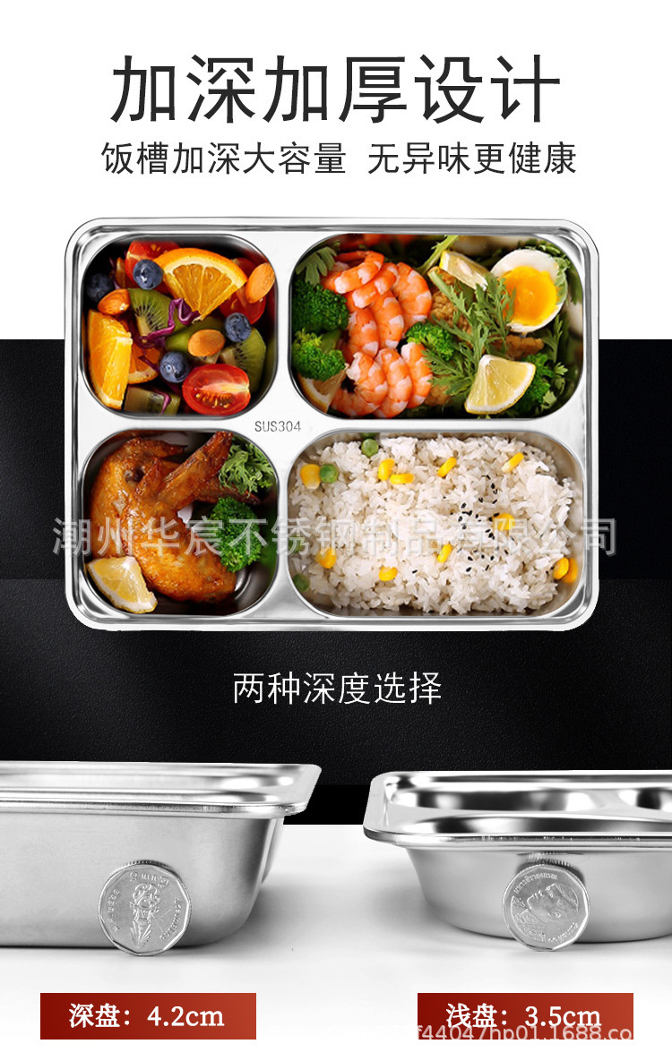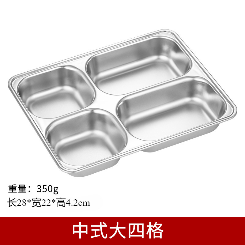 스테인레스 스틸 패스트 푸드 접시, 칸막이가 있는 구내식당 도시락, 성인용 사각형 디너 접시, 접시, 식기 트레이, 모던하고 심플한 스타일스토어 가기
