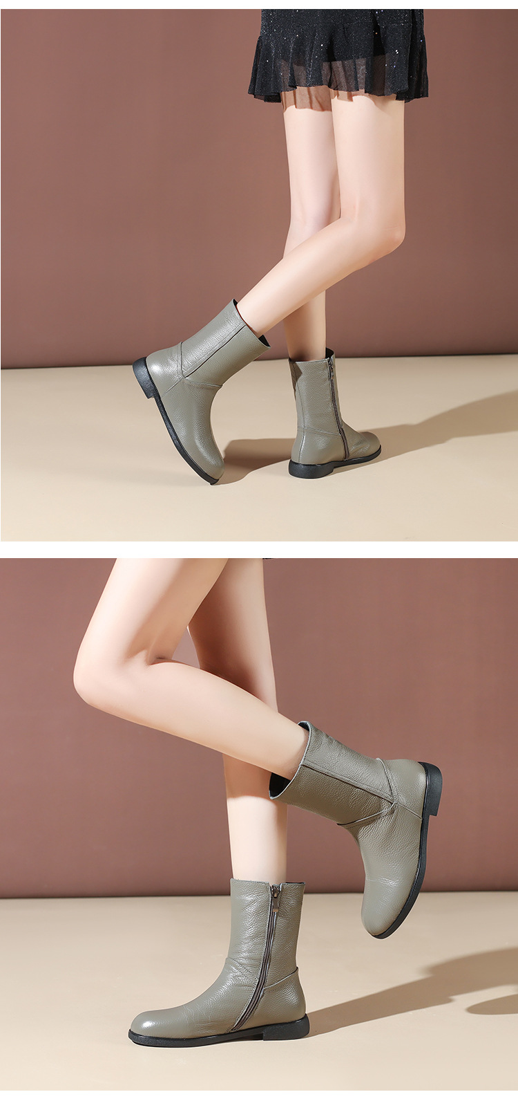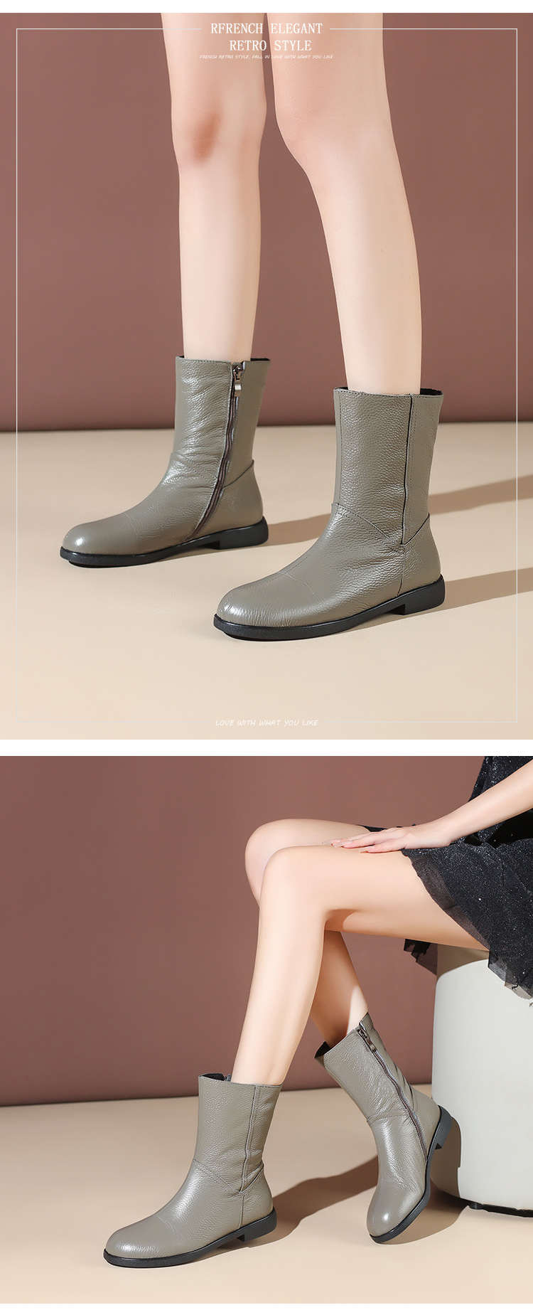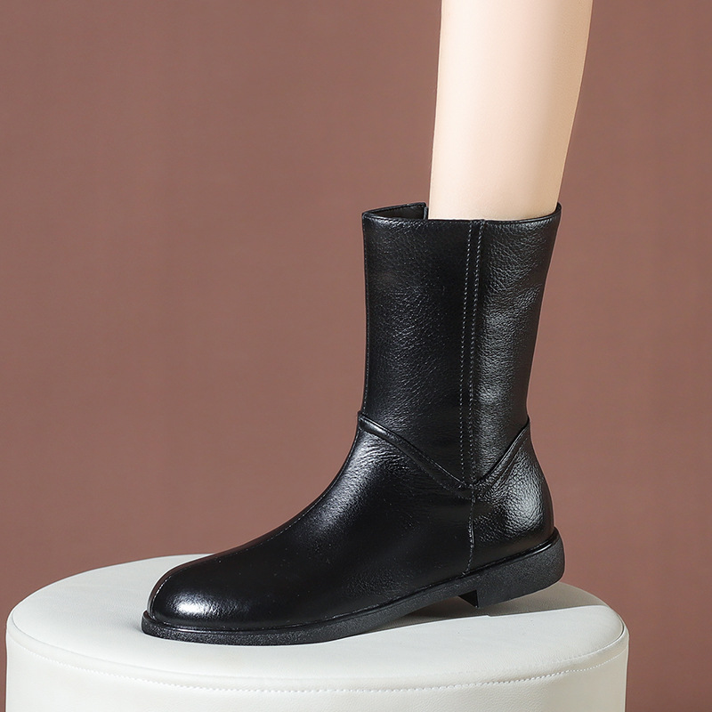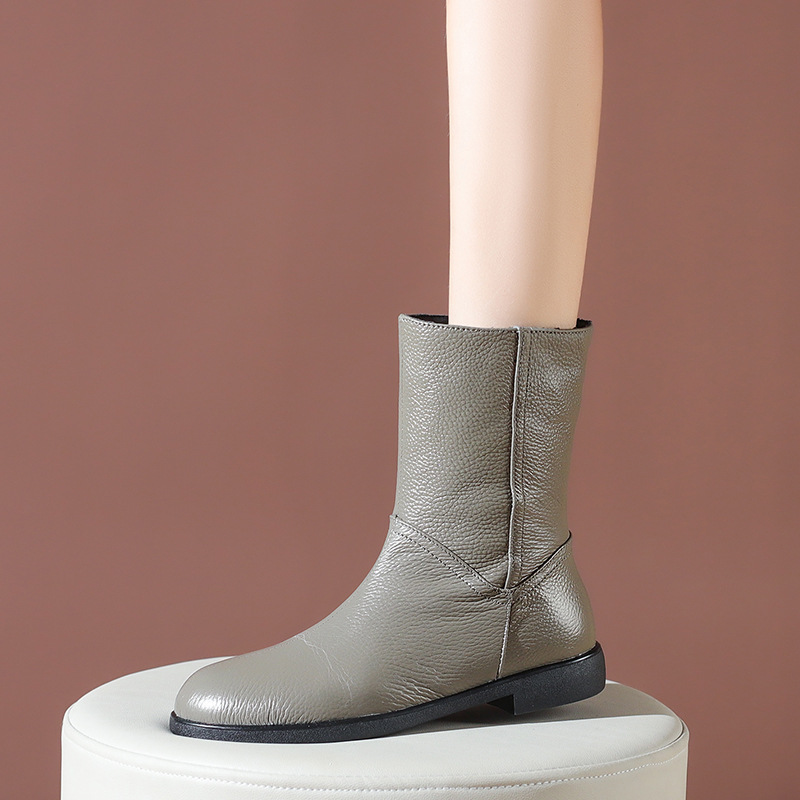 탑 레이어 Cowhide 정품 가죽 폭발성 짧은 부츠 여자 가을과 겨울 기모 첼시 부츠 두꺼운 힐 얇은 부츠 영국 스타일 마틴 부츠스토어 가기
