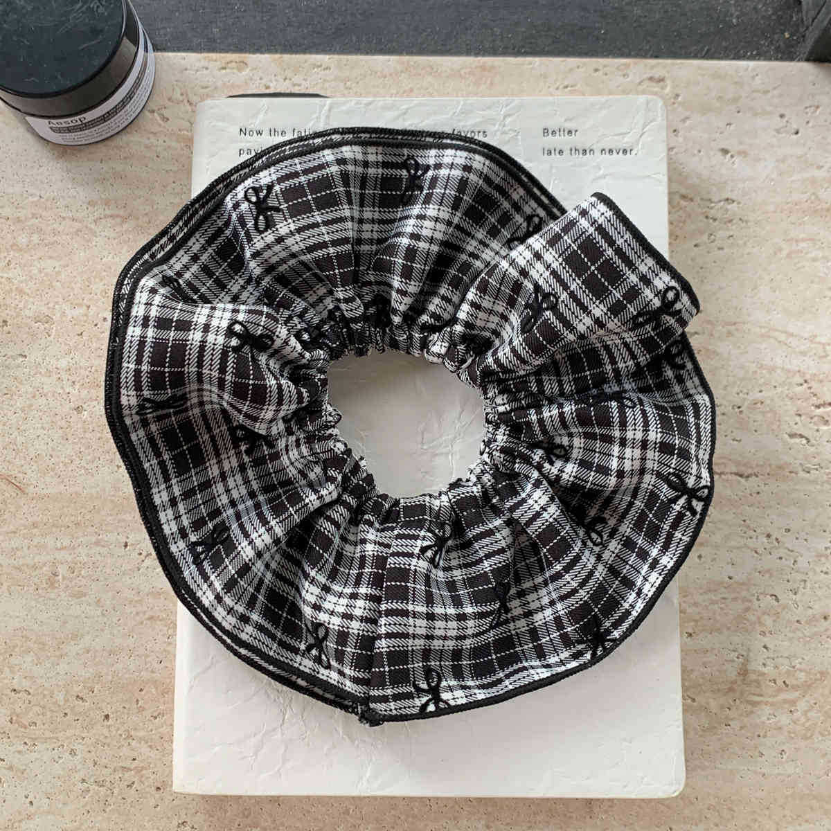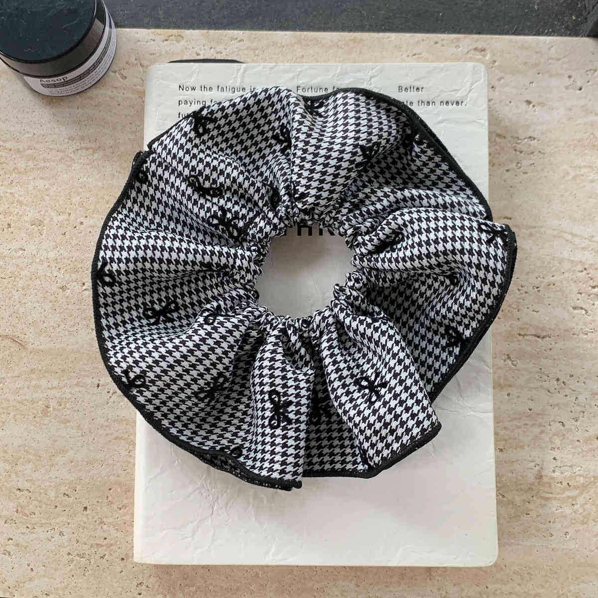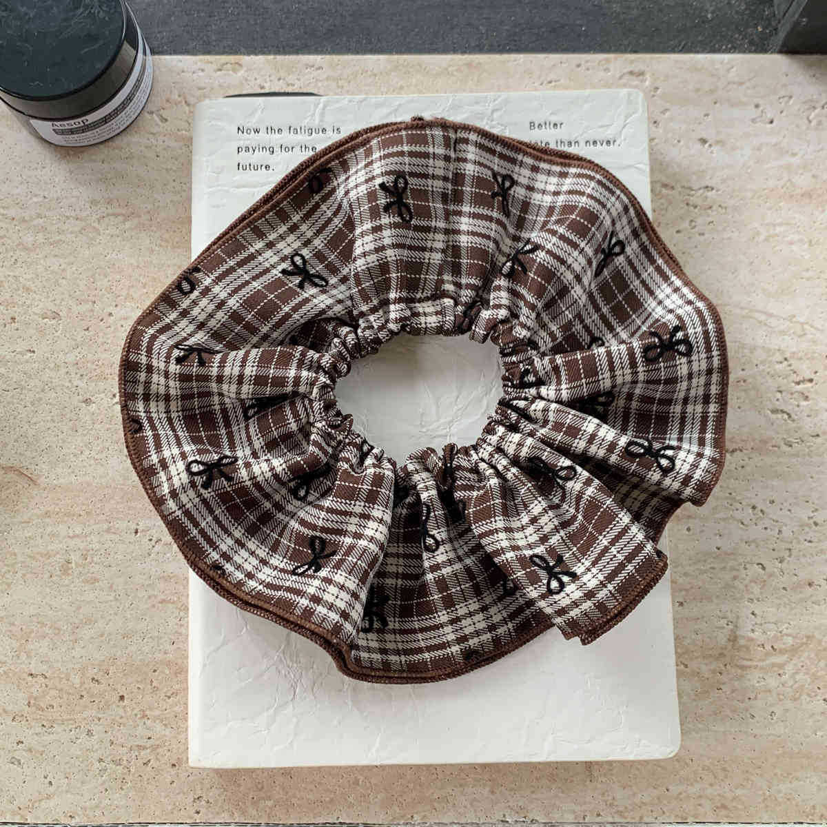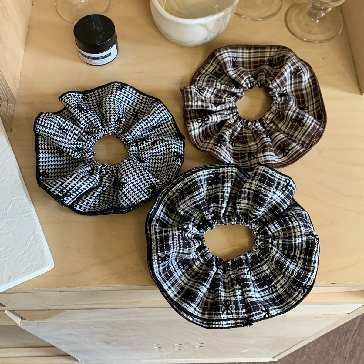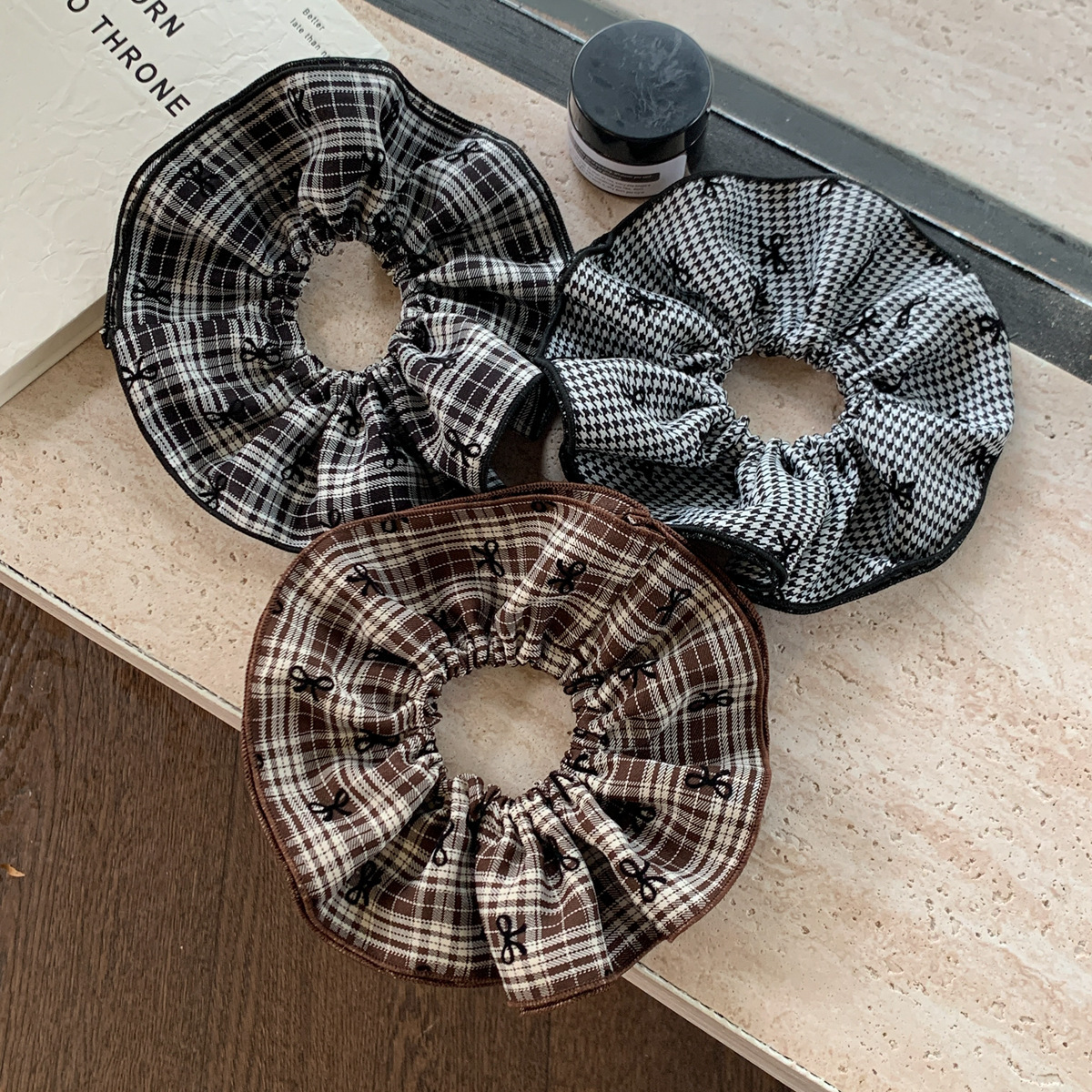빈티지 격자 활 대형 헤어 링 올 매치 블랙 다크 브라운 스타일 더블 볼 링 로우 포니 테일 고무 텐든 헤드 밴드