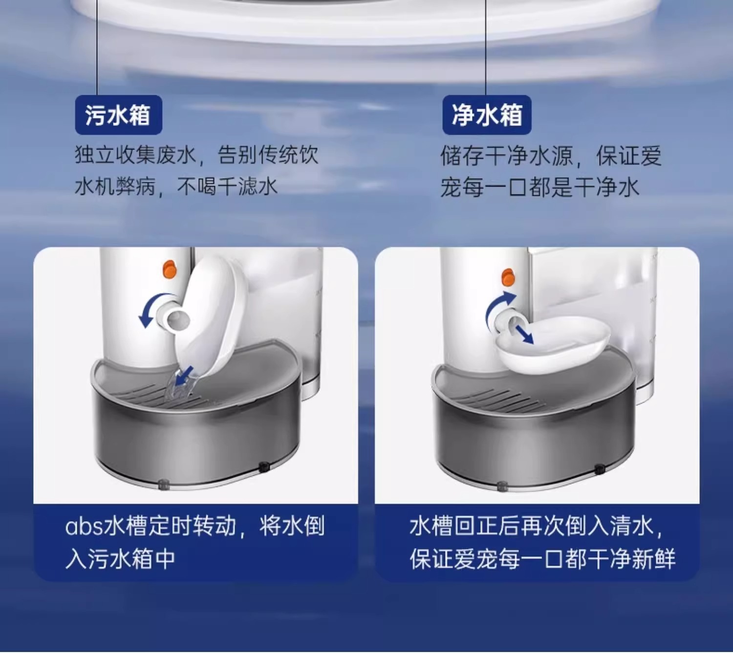 包含:主机*1、水碗*1、充电线、净水箱*1、污水箱*1、说明书、净水箱盖*1、污水箱盖*1