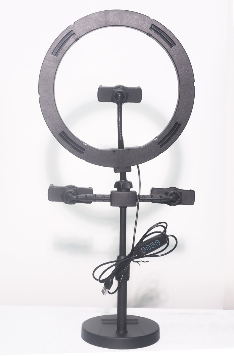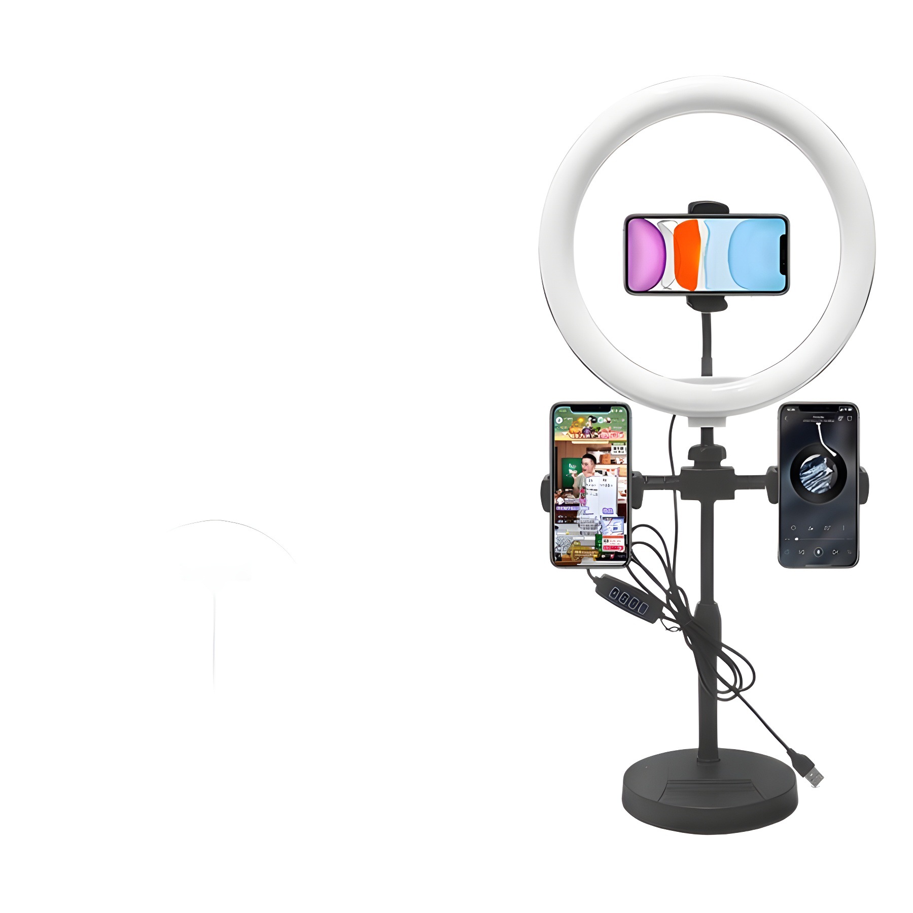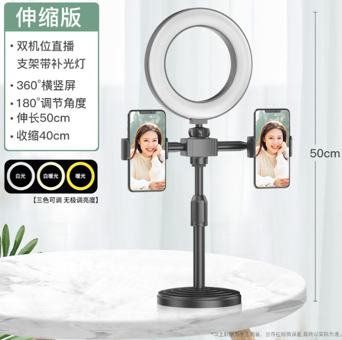 조명이 있는 국경 간 데스크탑 듀얼 카메라 라이브 스트리밍 스탠드, 야외 촬영용 조명, 특수 텔레스코픽 셀카 링 라이트스토어 가기