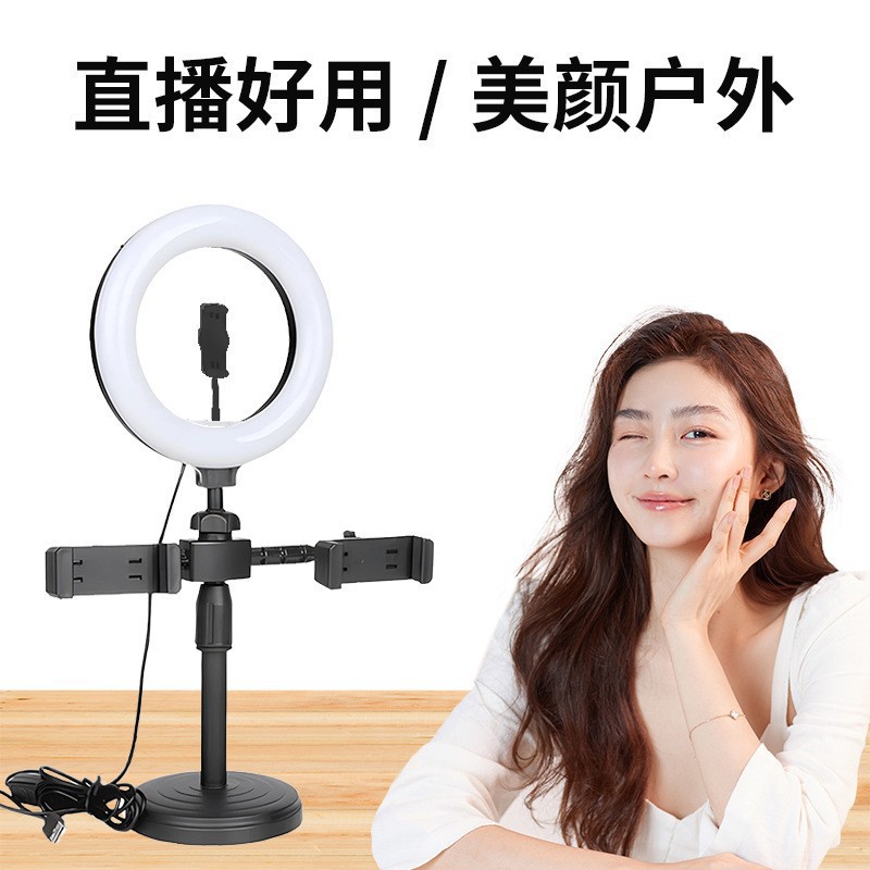 조명이 있는 국경 간 데스크탑 듀얼 카메라 라이브 스트리밍 스탠드, 야외 촬영용 조명, 특수 텔레스코픽 셀카 링 라이트