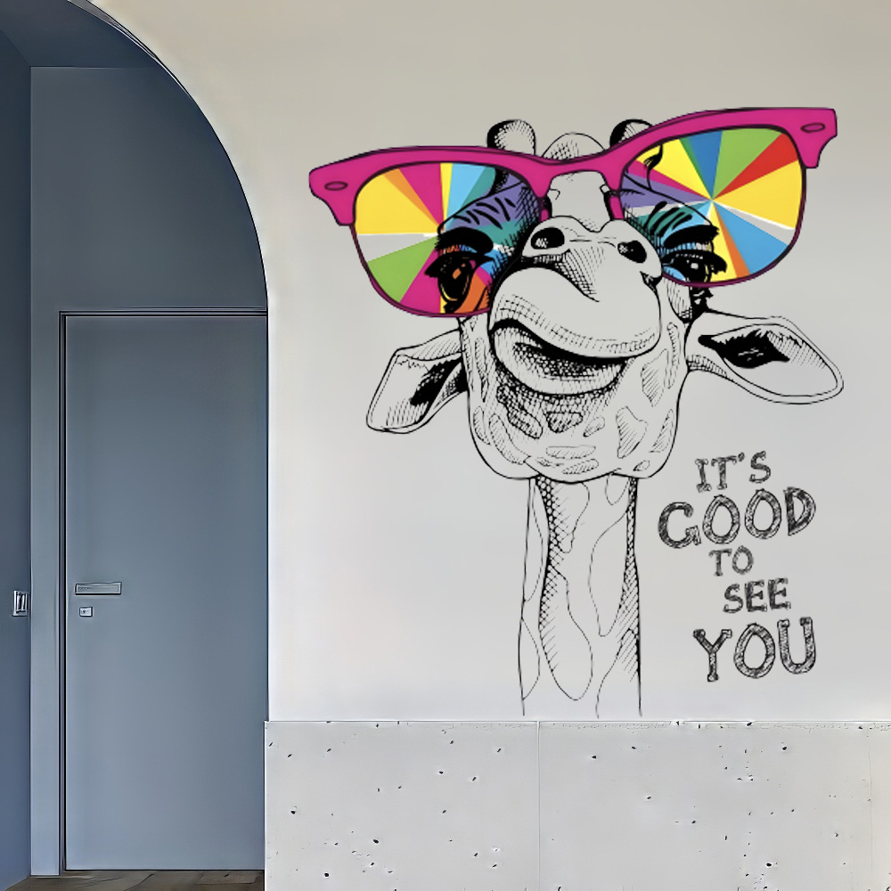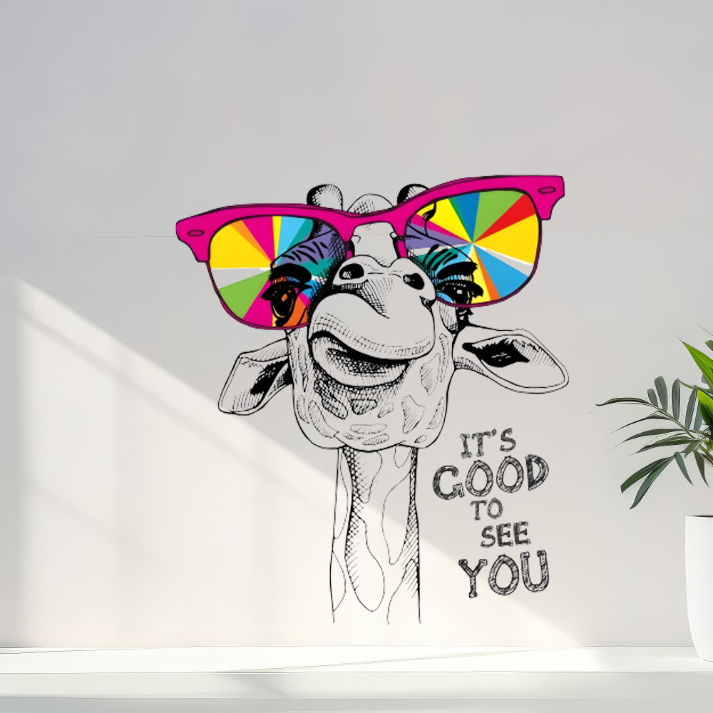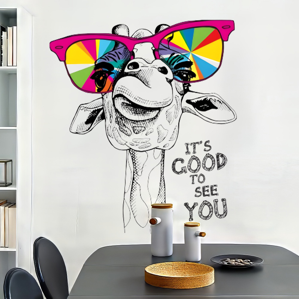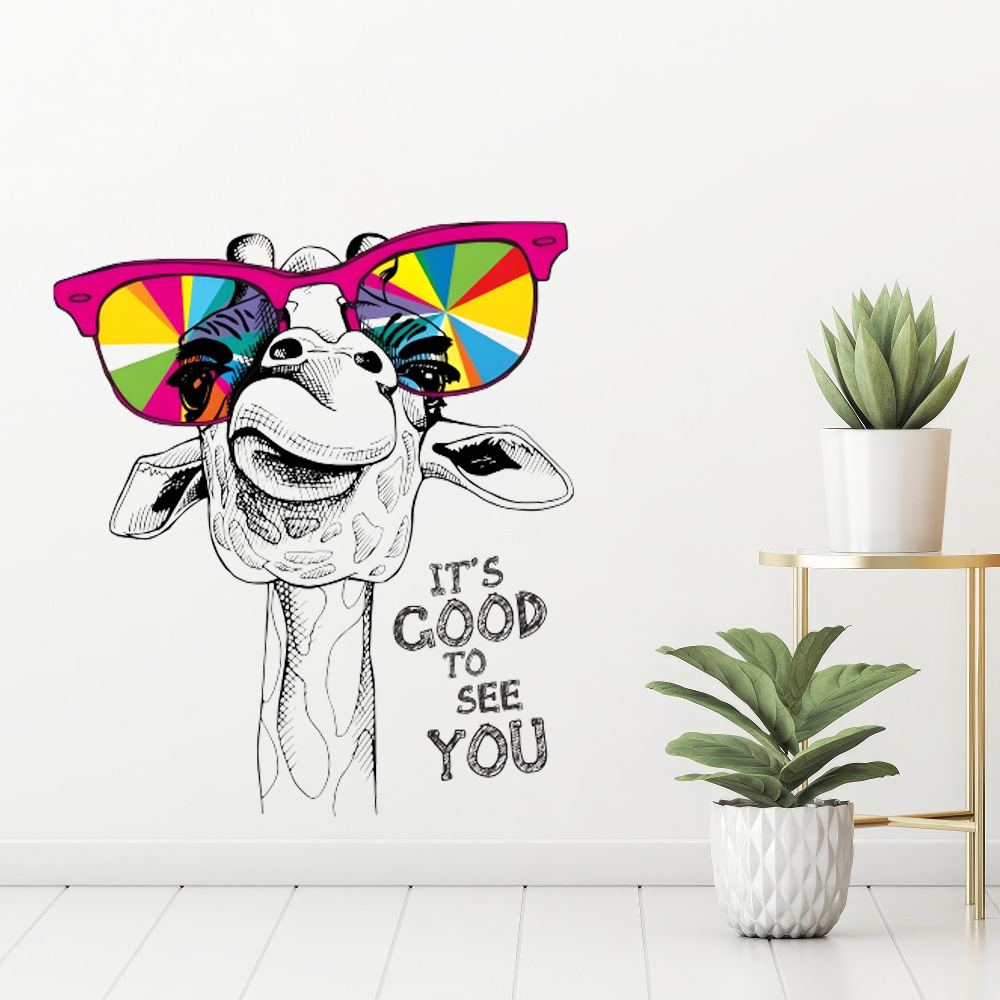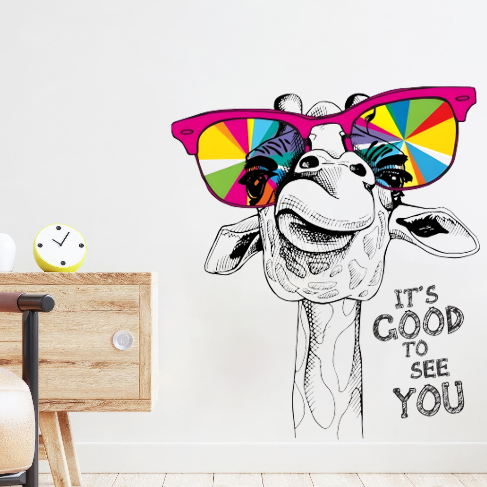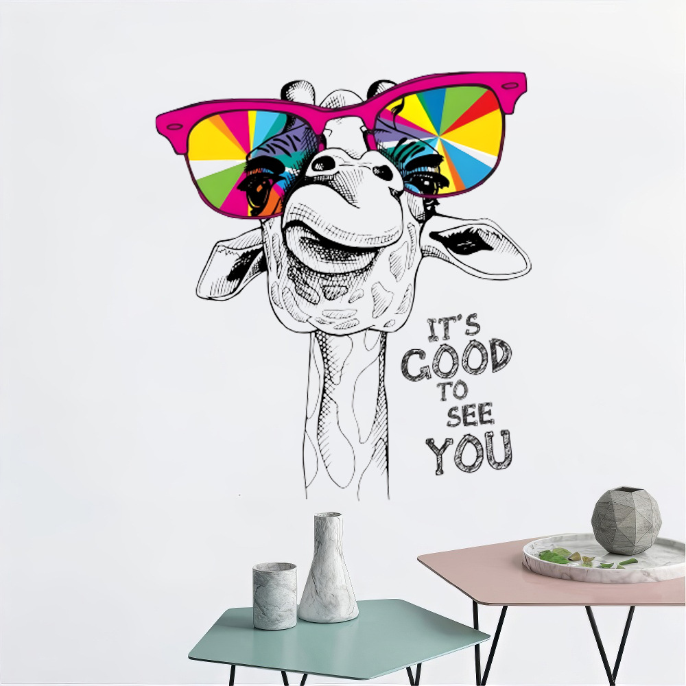 2025 대외 무역 안경이있는 새로운 기린 벽 스티커 침실 거실 캐비닛 홈 벽 미화 장식 스티커스토어 가기