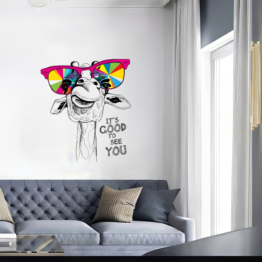 2025 대외 무역 안경이있는 새로운 기린 벽 스티커 침실 거실 캐비닛 홈 벽 미화 장식 스티커