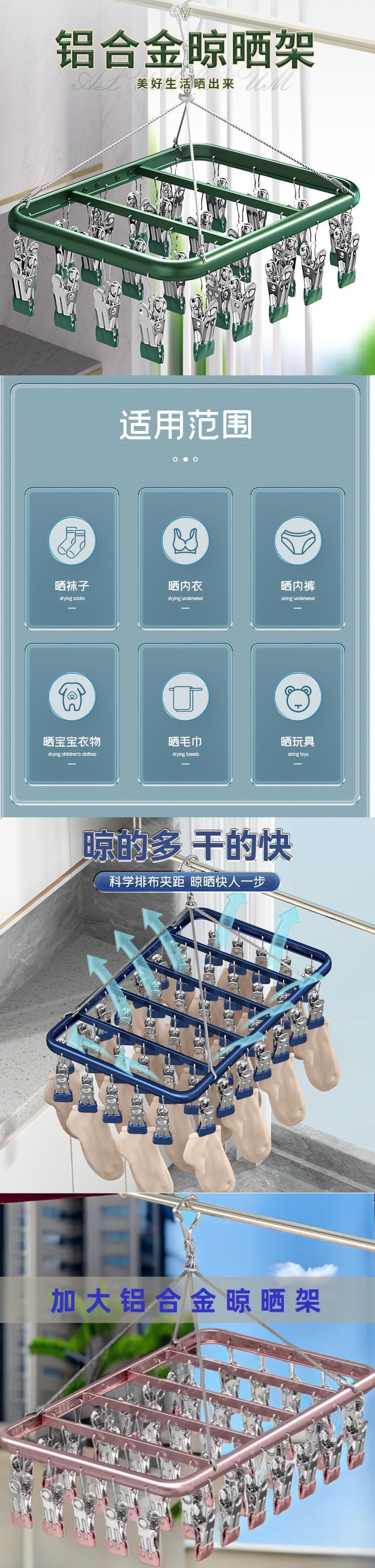 태양 양말 아티팩트 가정용 의류 매달려 멀티 클립 건조 랙 원활한 방풍 기숙사 쿨 속옷 속옷 베이비 양말 클립