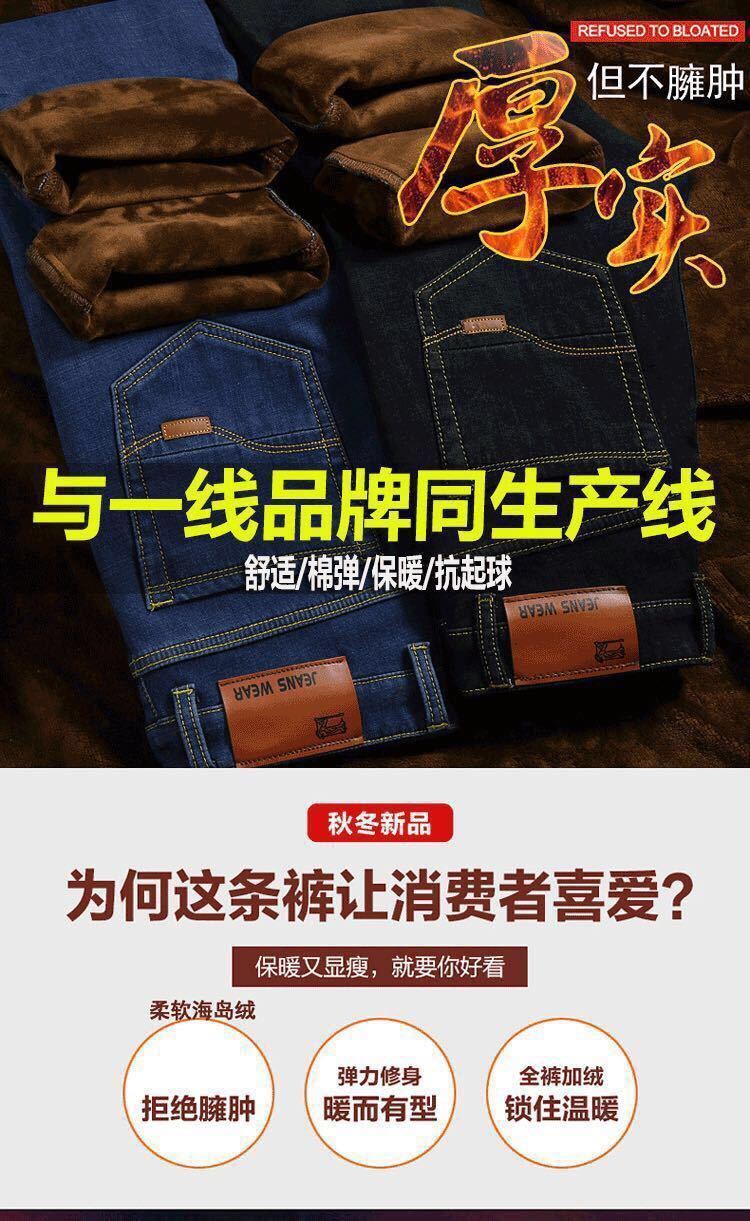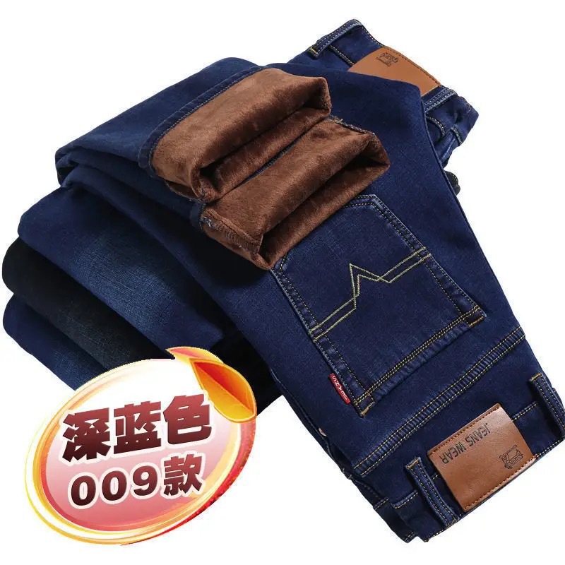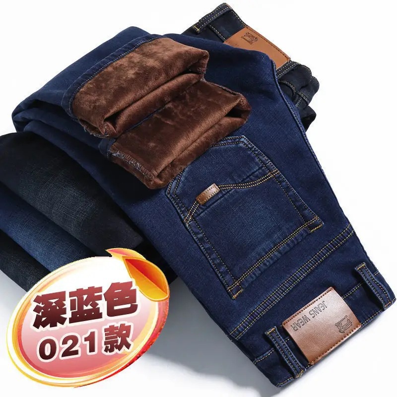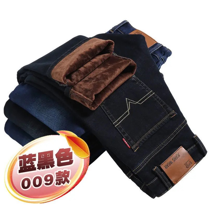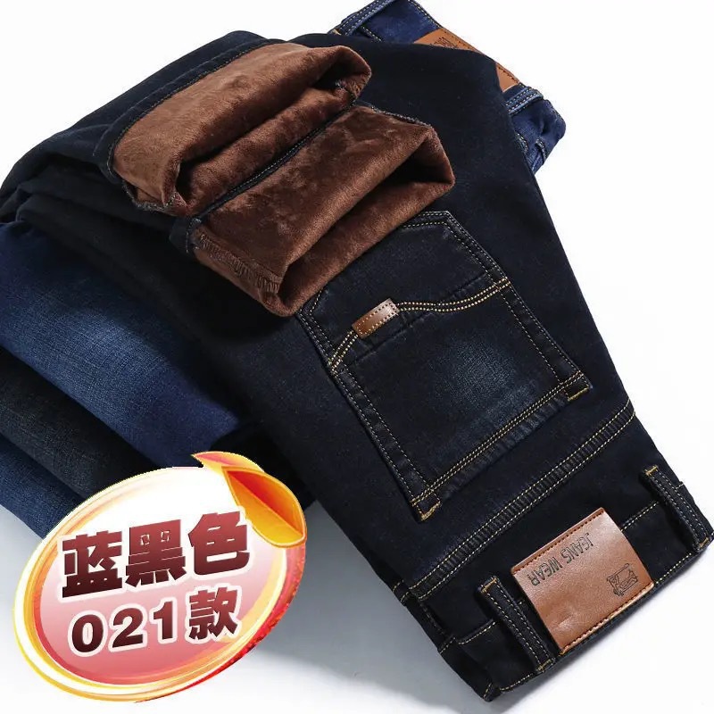 맞춤형 남성용 데님 팬츠, 기모 안감으로 보온성 강화, 스트레이트 루즈핏 캐주얼 롱 팬츠, 가을 겨울 신상 남성 트렌드 브랜드