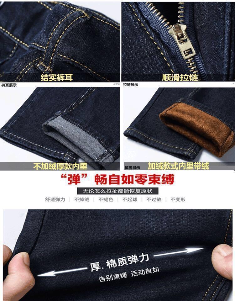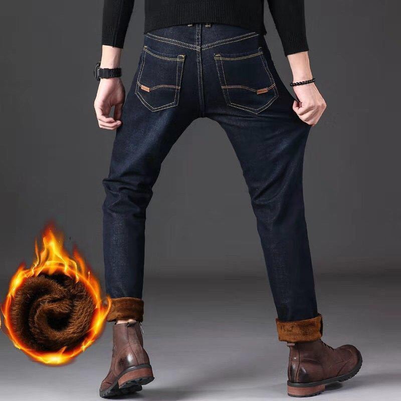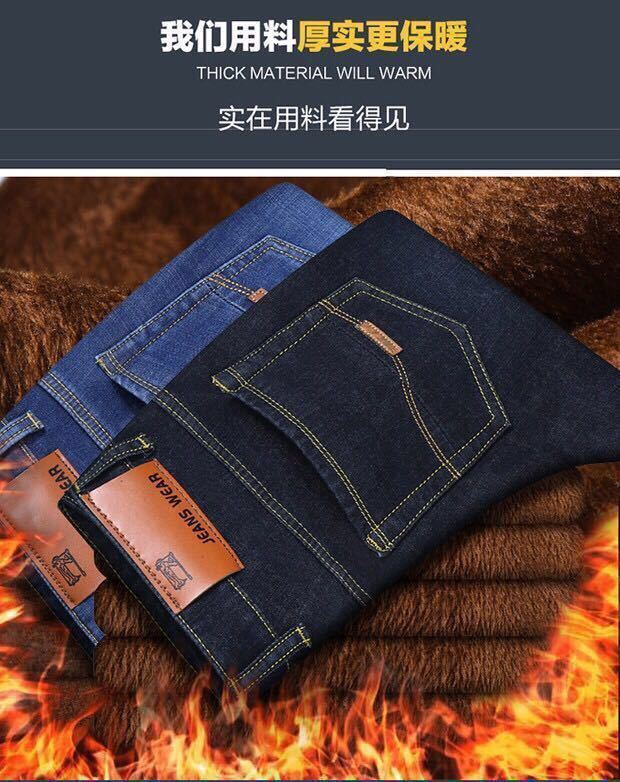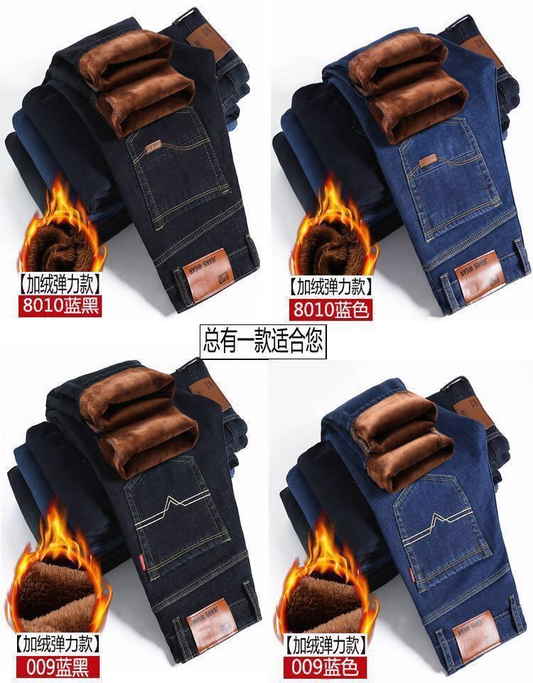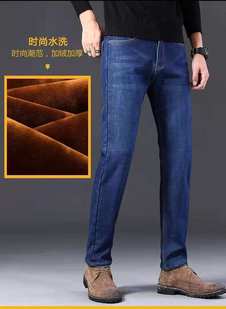 맞춤형 남성용 데님 팬츠, 기모 안감으로 보온성 강화, 스트레이트 루즈핏 캐주얼 롱 팬츠, 가을 겨울 신상 남성 트렌드 브랜드스토어 가기