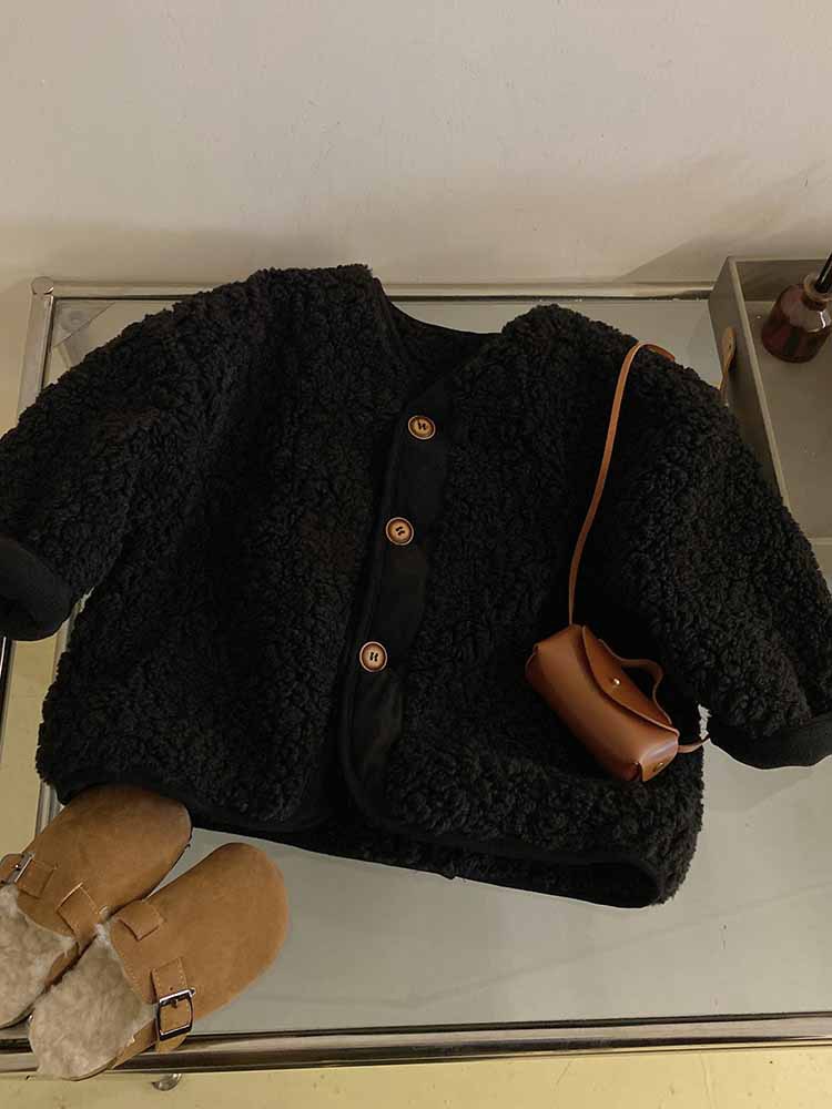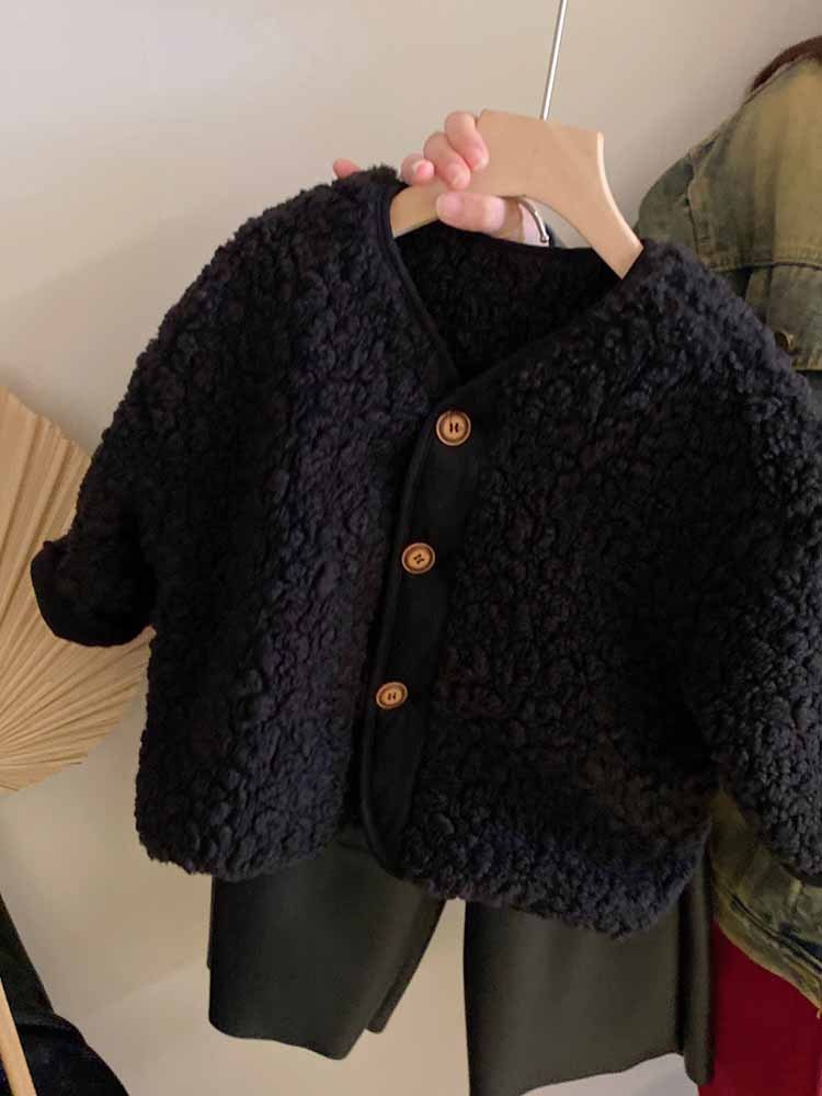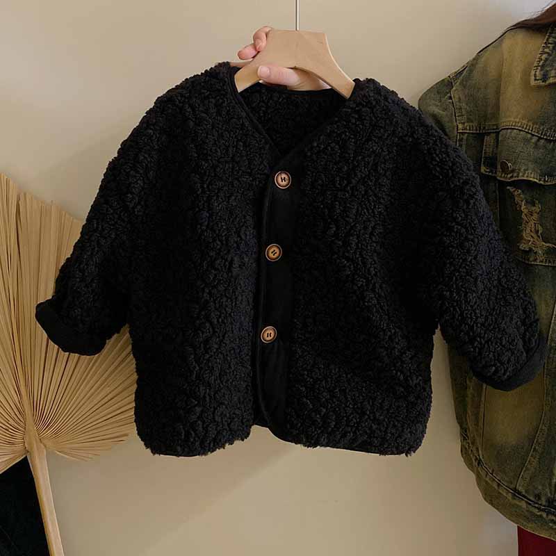 한국 스타일 간단한 세트 2024 가을/겨울 새 기모 따뜻한 마오 마오 자켓 유행 기모 가죽 바지 아동복스토어 가기