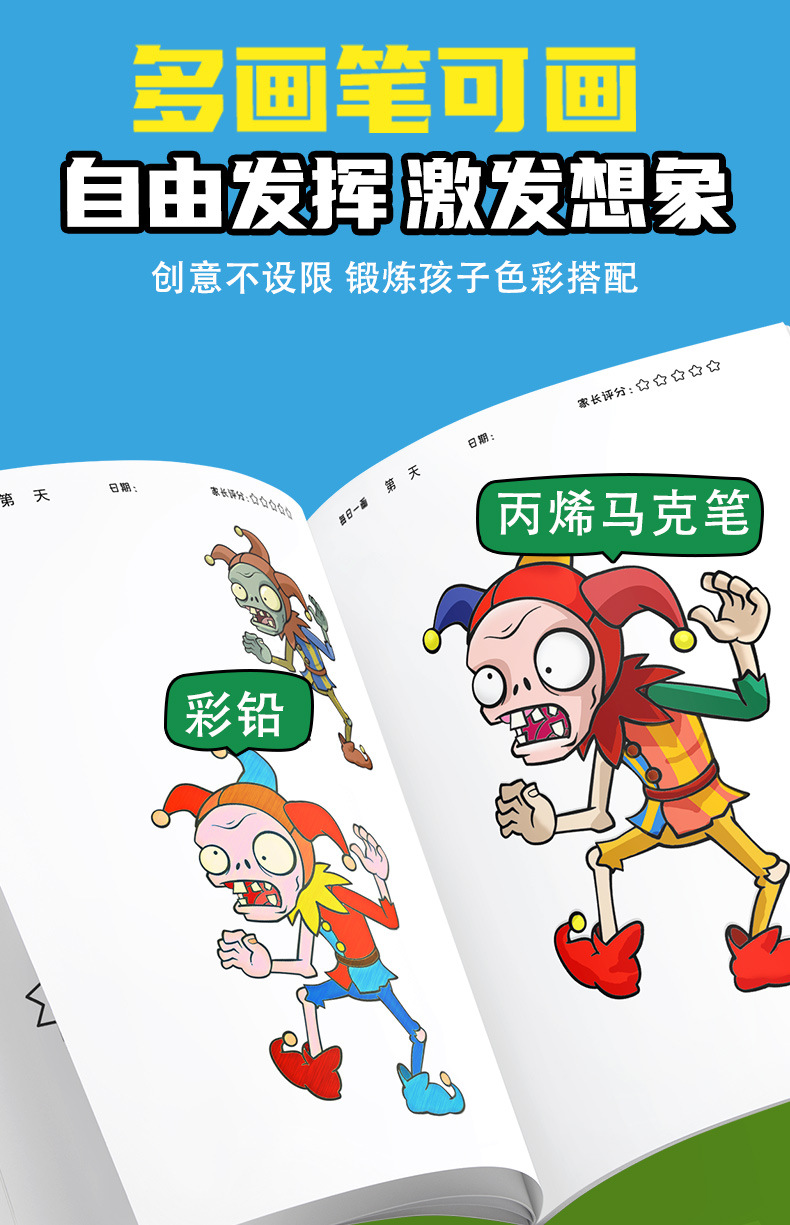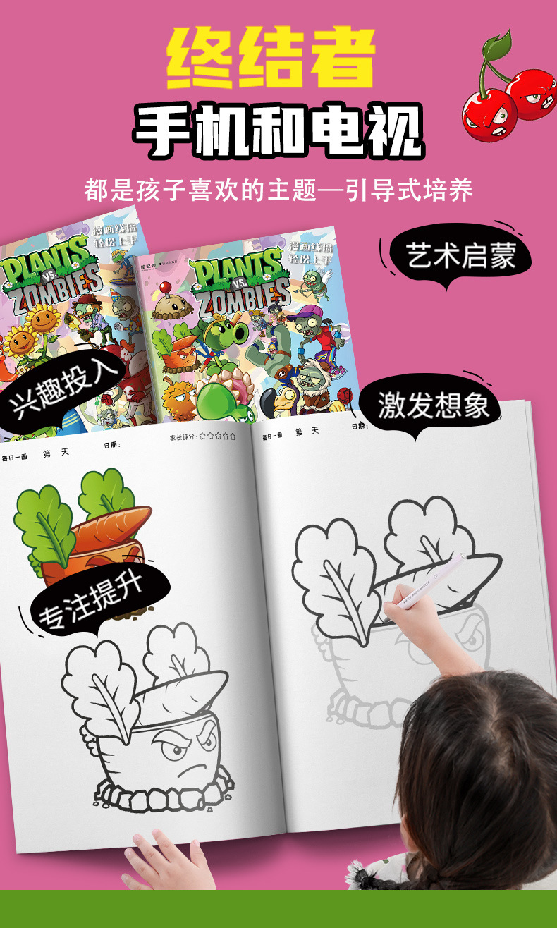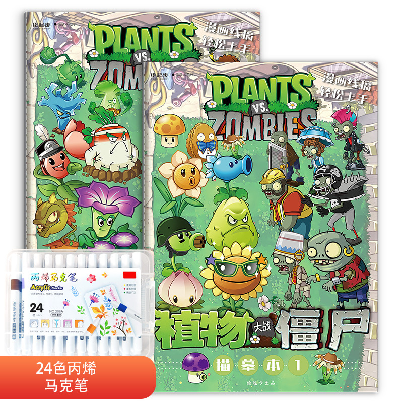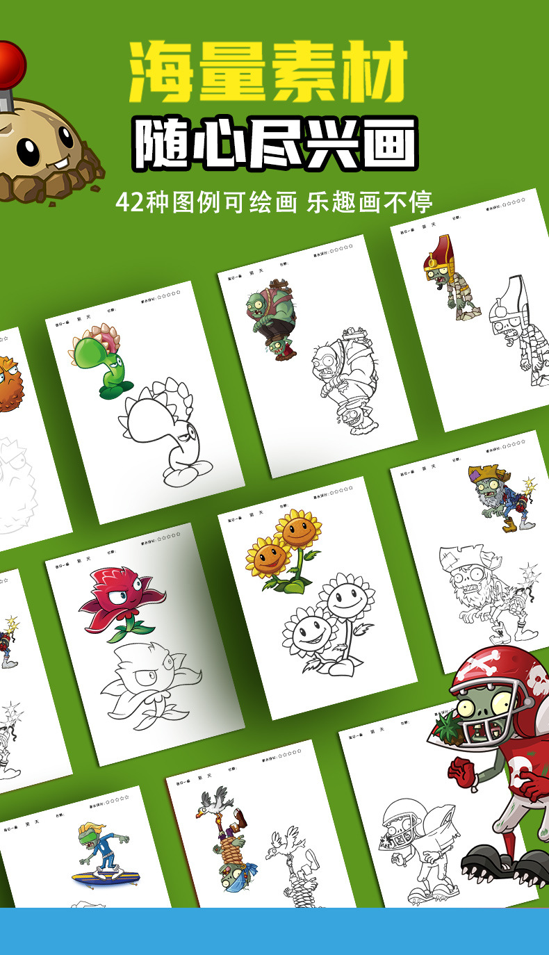 어린이들은이 식물 대 좀비 그림 컬러 낙서 게임 애니메이션 그리기 만화를 그려서 묘사하기 위해 주도권을 잡습니다.스토어 가기