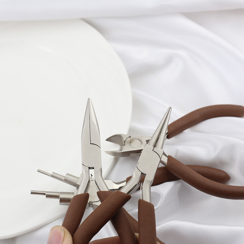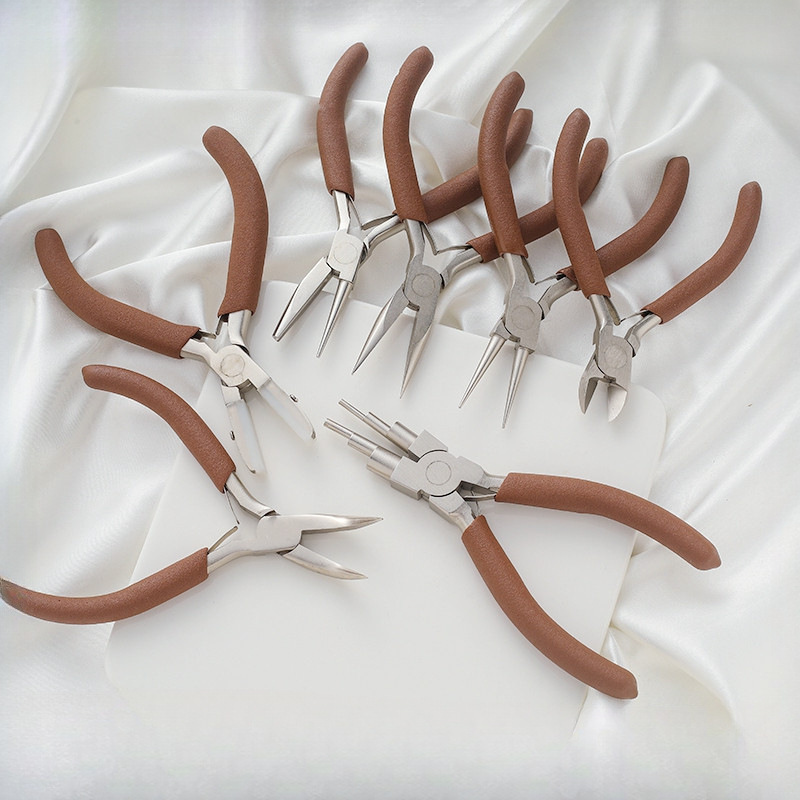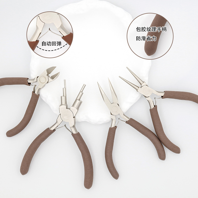 새로운 니켈 도금 고품질 대각선 펜치 보석 펜치 세트 다크 브라운 절단 와이어 권선 DIY 보석 다기능 도구스토어 가기