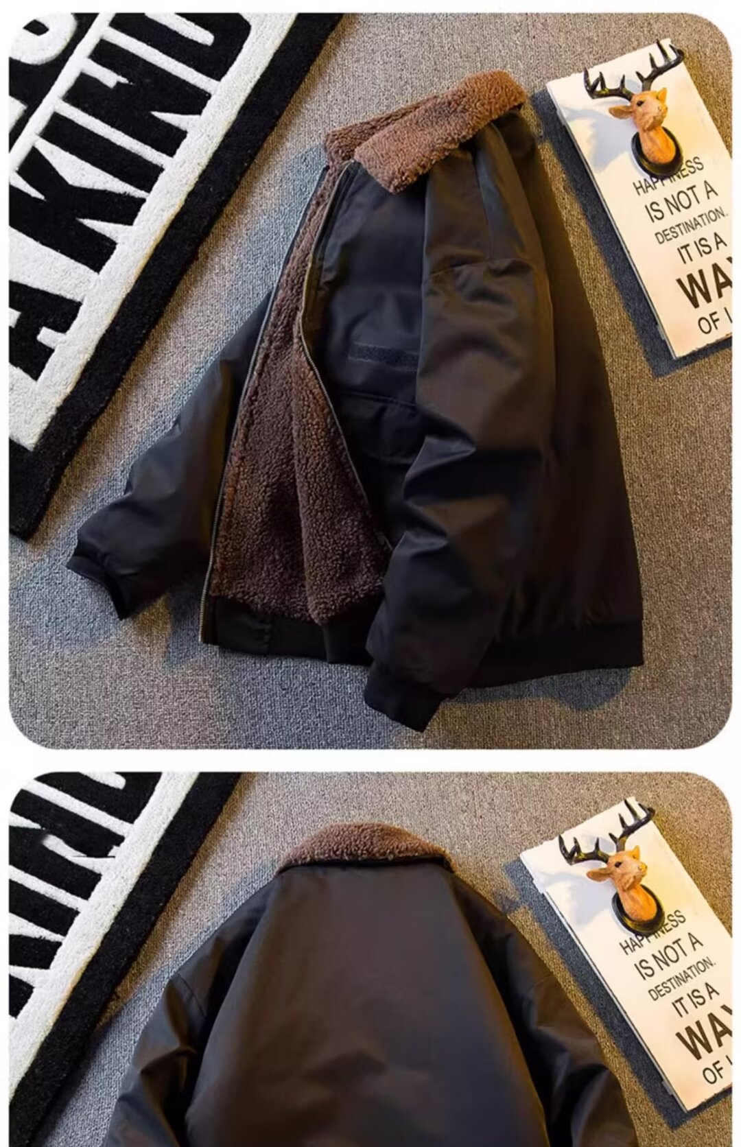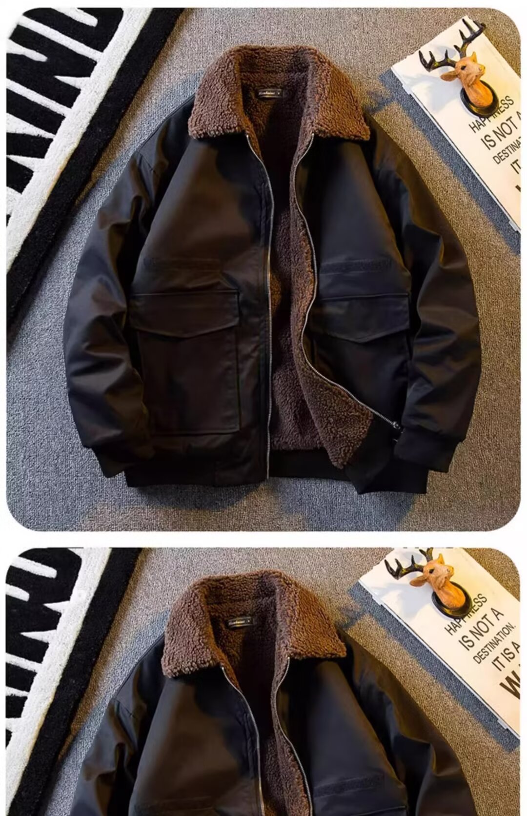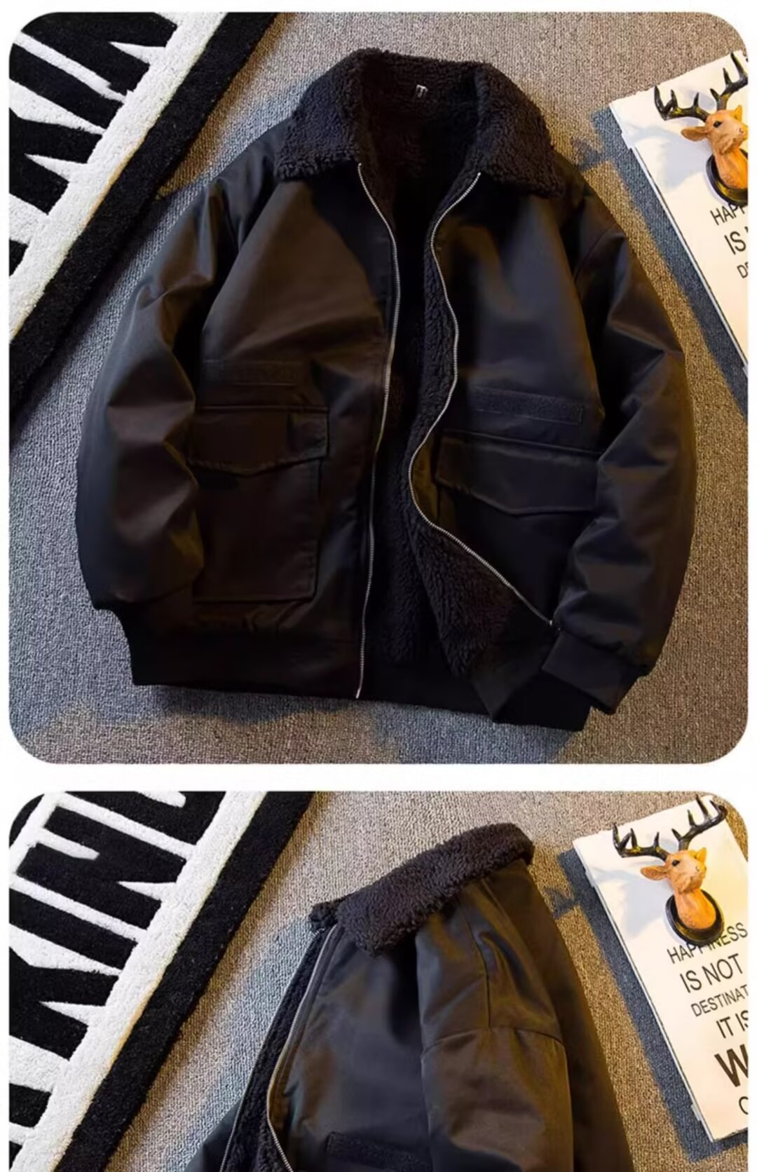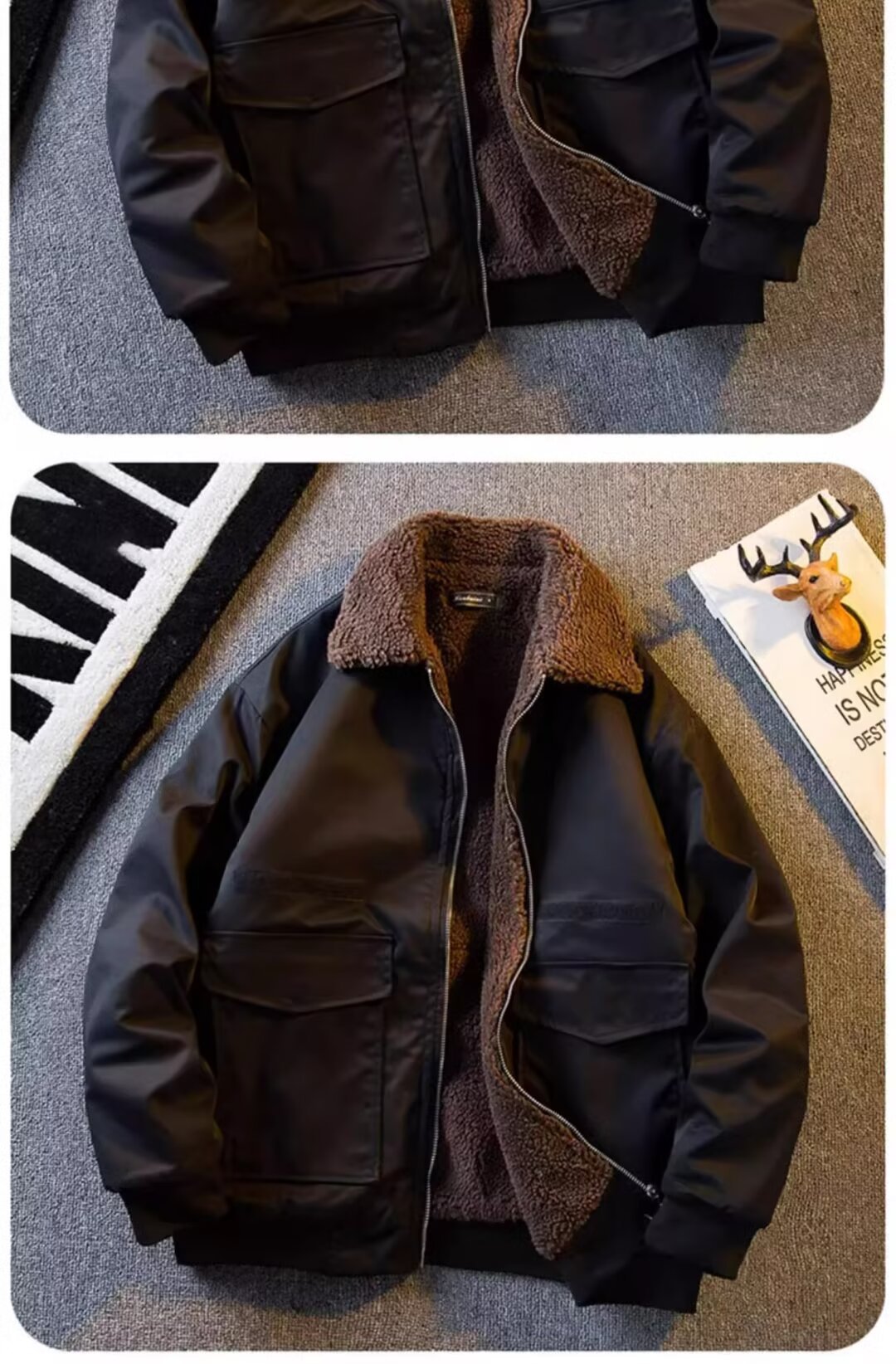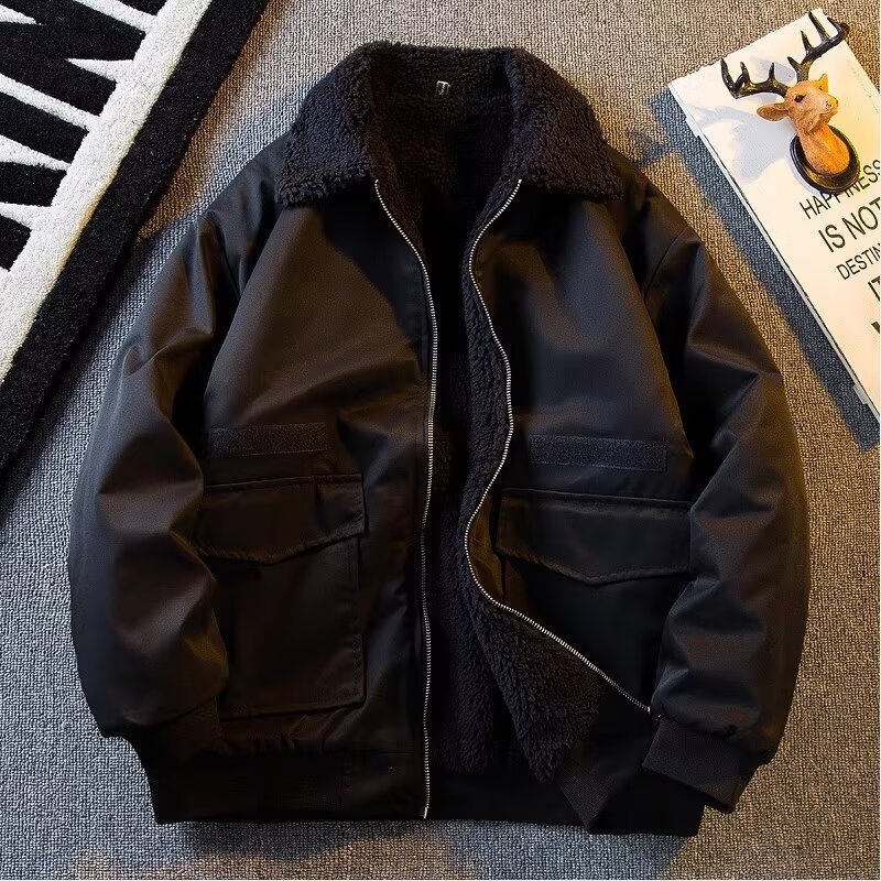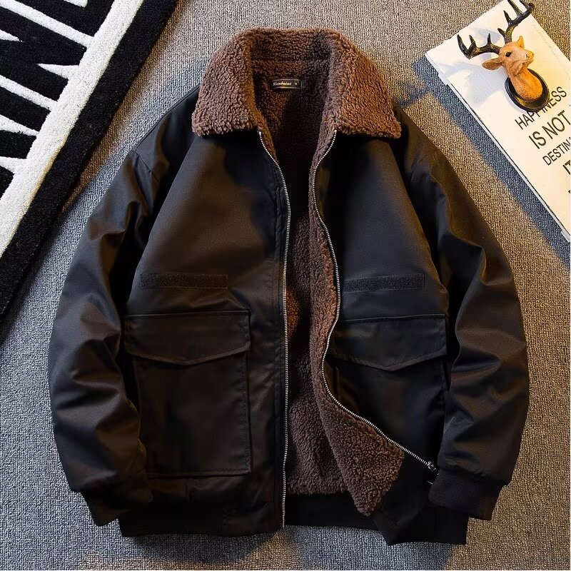2024 미국 캐주얼 양모 옷깃 재킷 기모 두꺼운 짧은 작업 재킷 남자의 가을과 겨울 빈티지스토어 가기