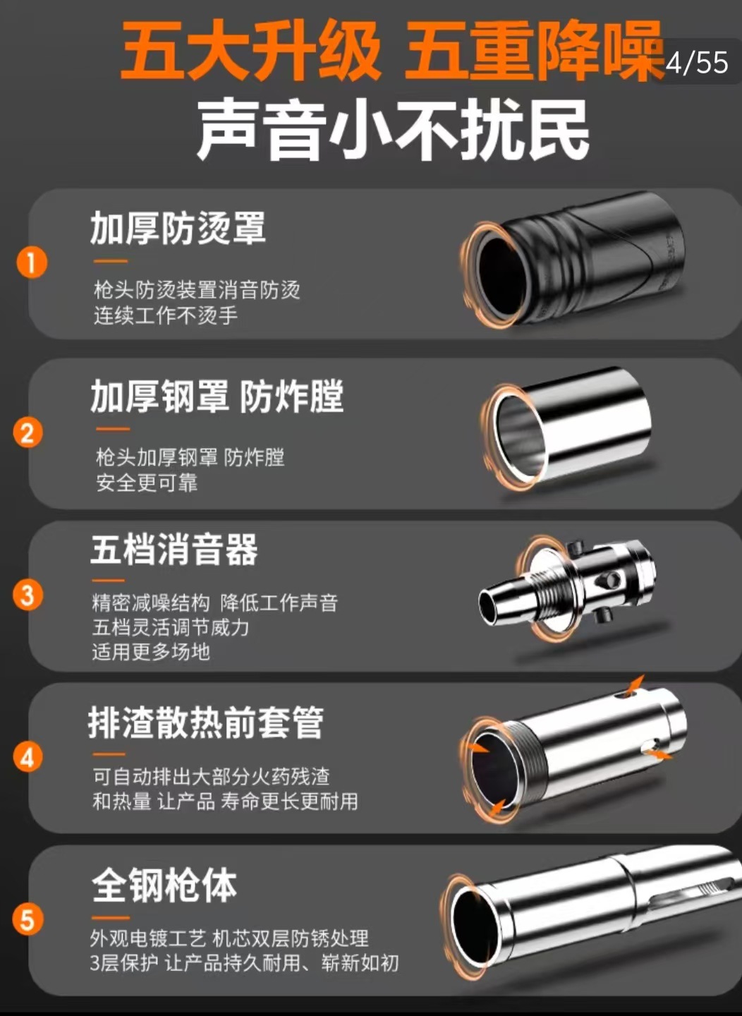 • 주황색 단일 총 + 액세서리 가방 + 못 50개