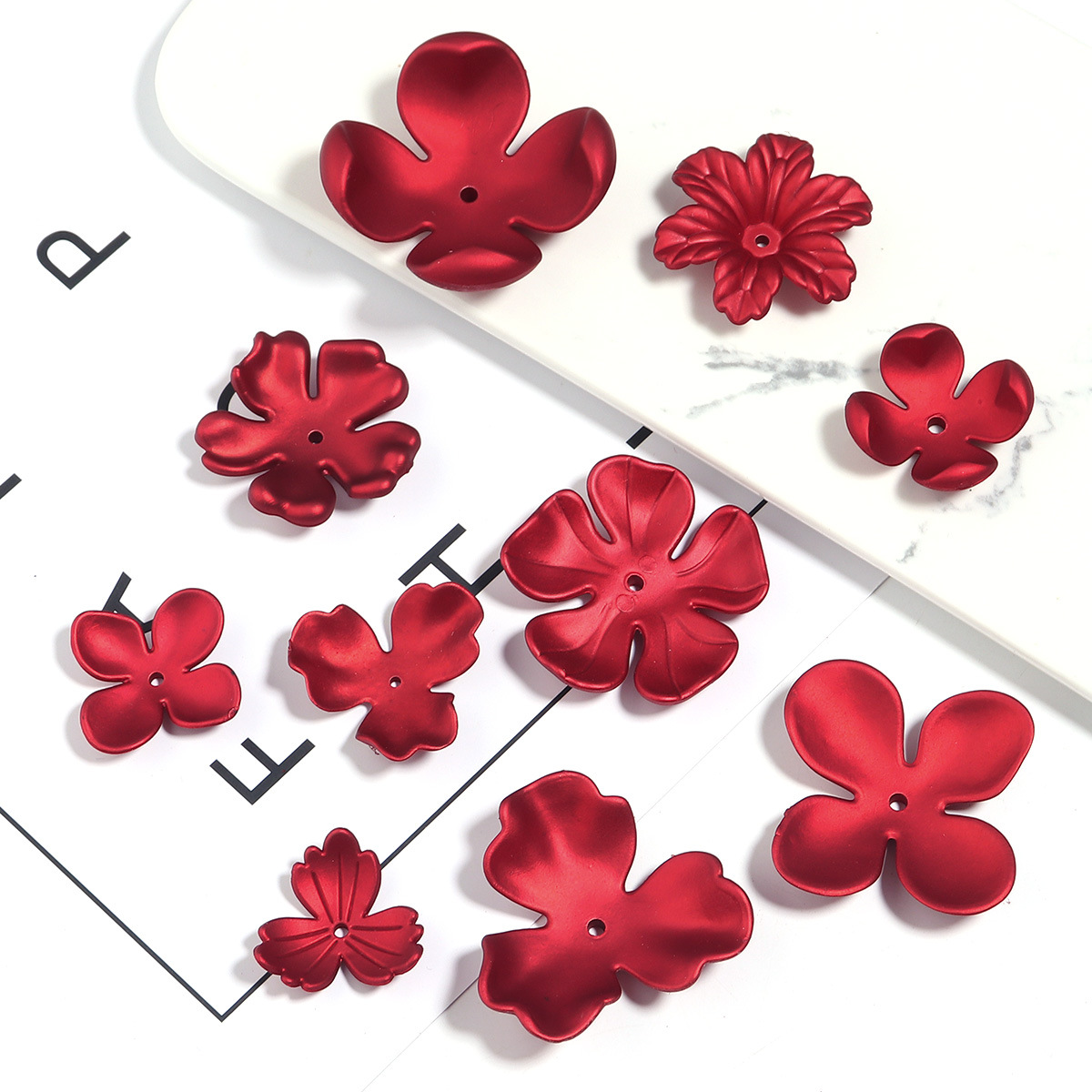 버건디 솔리드 컬러 아크릴 5 꽃잎 꽃 DIY 귀걸이 신부 Corsage 신부 들러리 수제 손목 꽃 액세서리