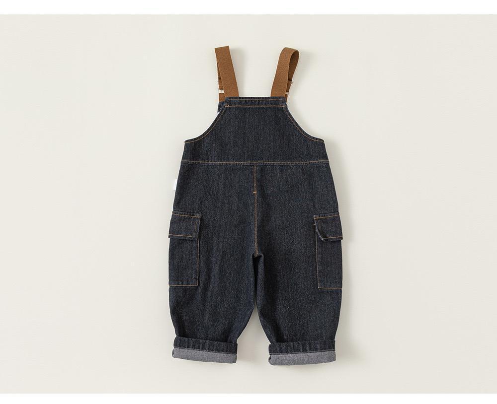 2024 년 어린이 버클 바지 봄과 가을 아기 청바지 한국 스타일 소년 유행 의류 코튼 버클 바지