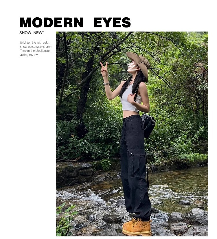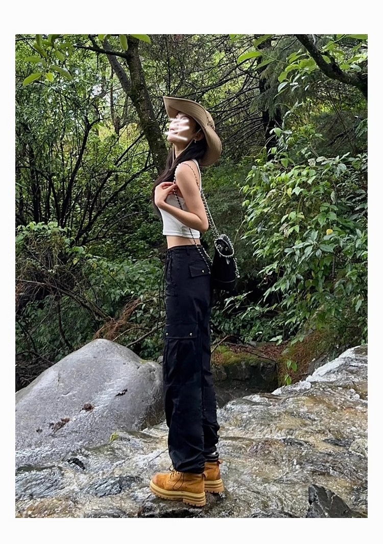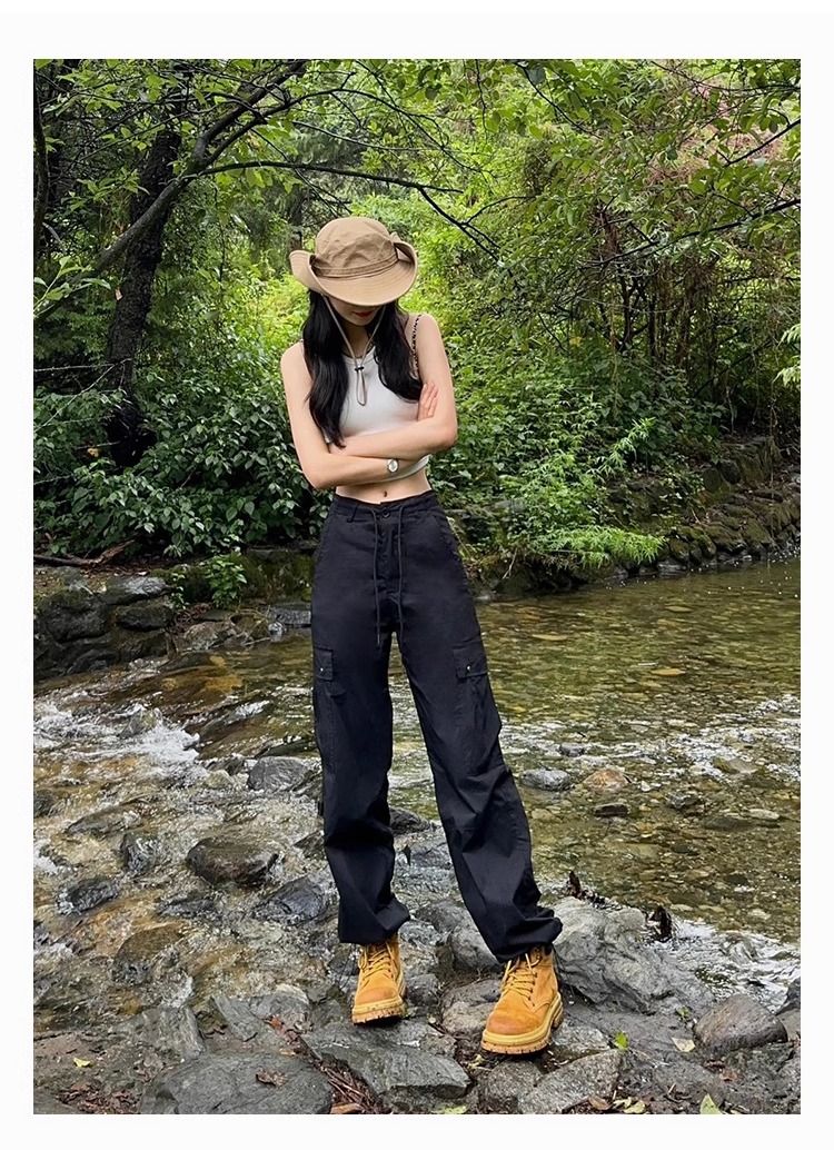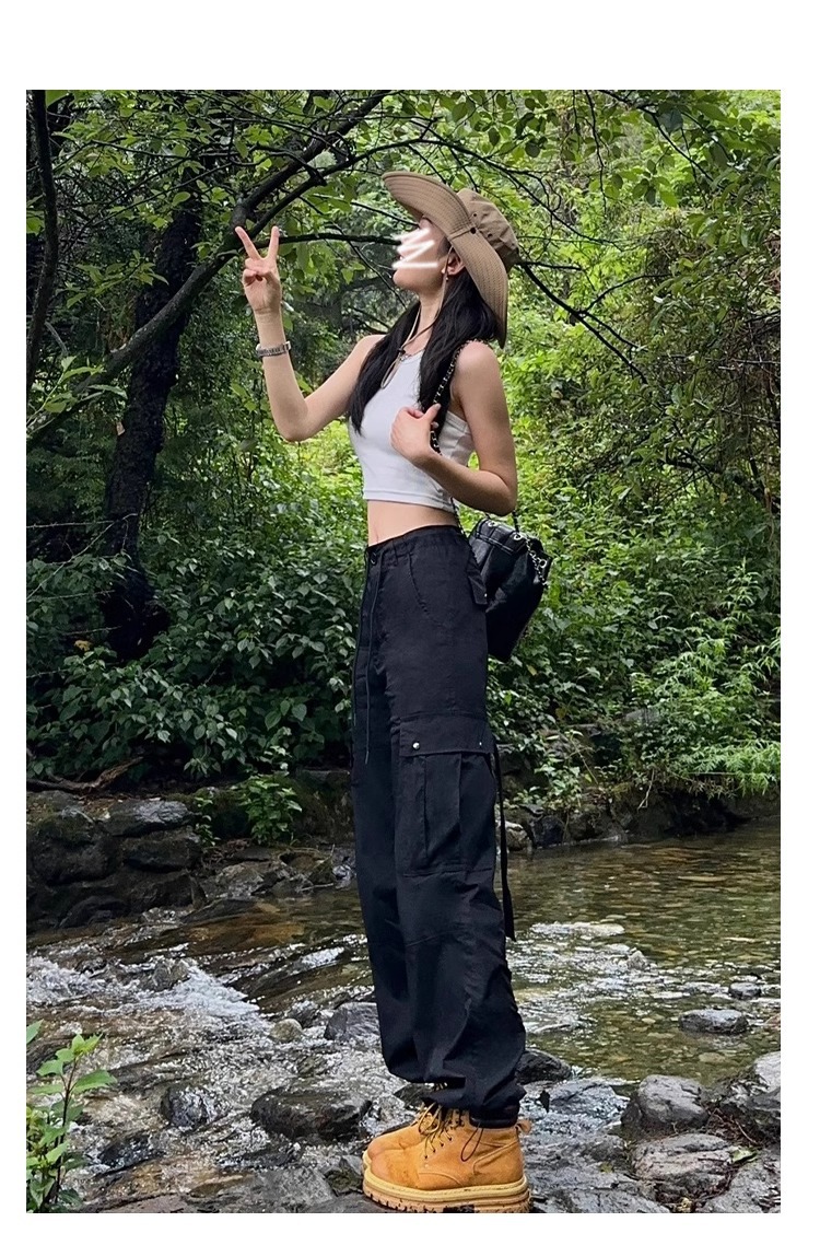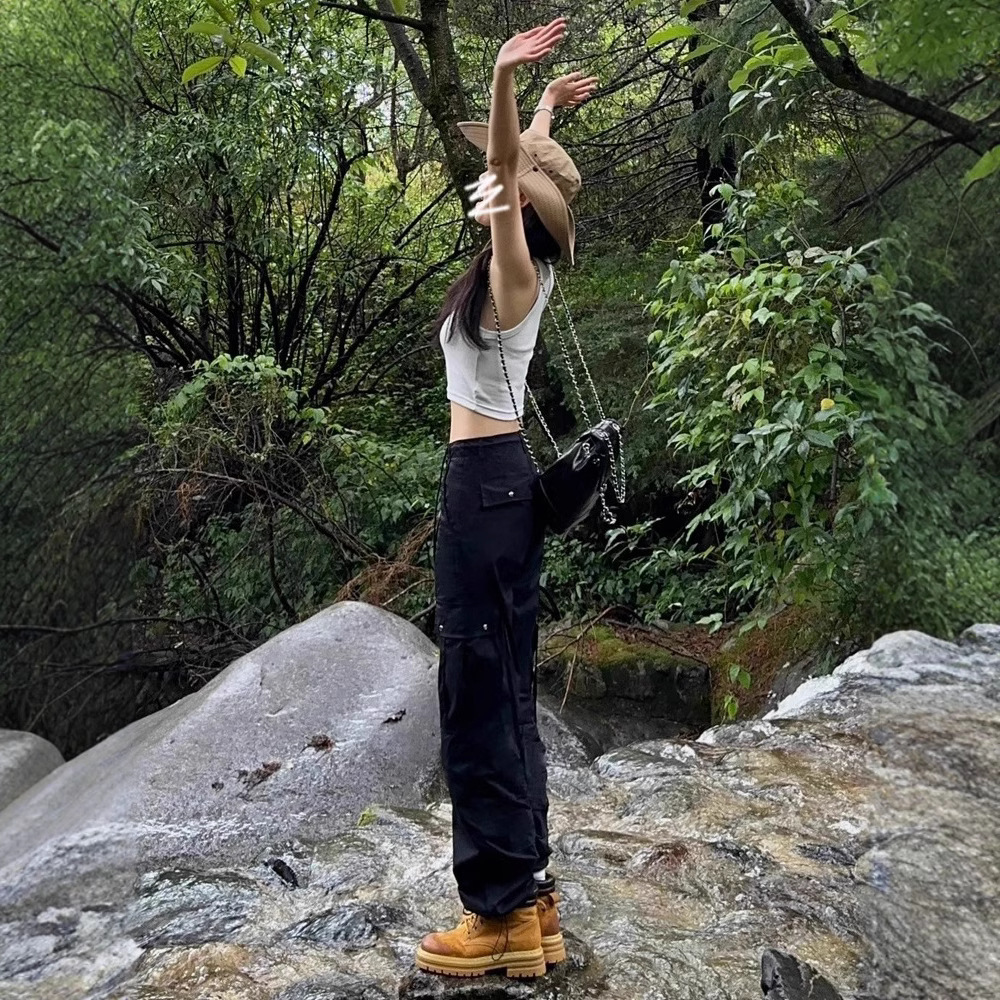 블랙 크록 팬츠 여성의 2024 새로운 높은 허리 스트레이트 봄과 가을 등산 바지 충전 바지스토어 가기