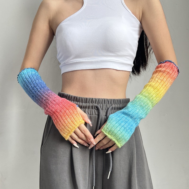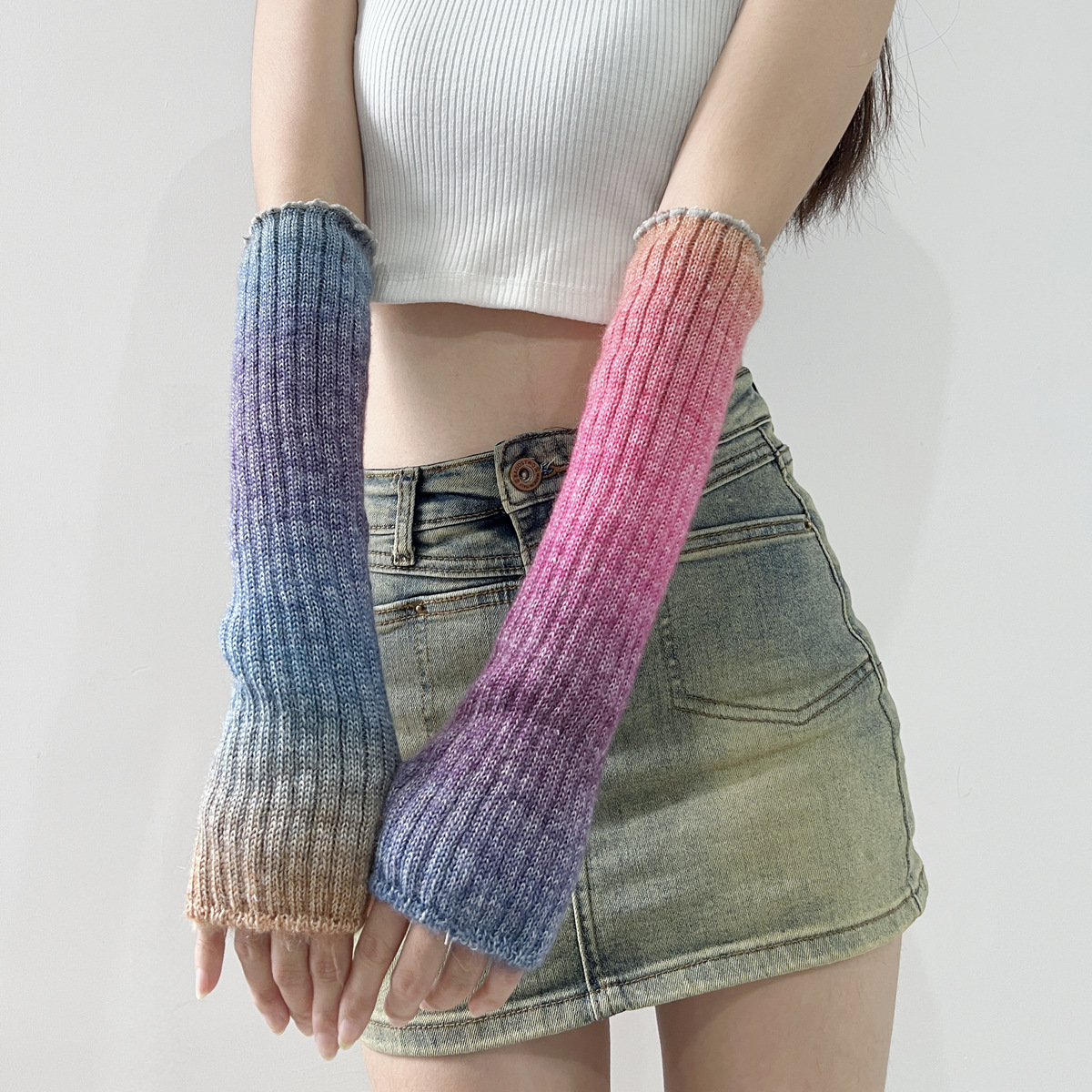 그라디언트 양모 더미 소매 양모 니트 두꺼운 따뜻한 팔 커버 레인보우 컬러 반 익사 장갑 355