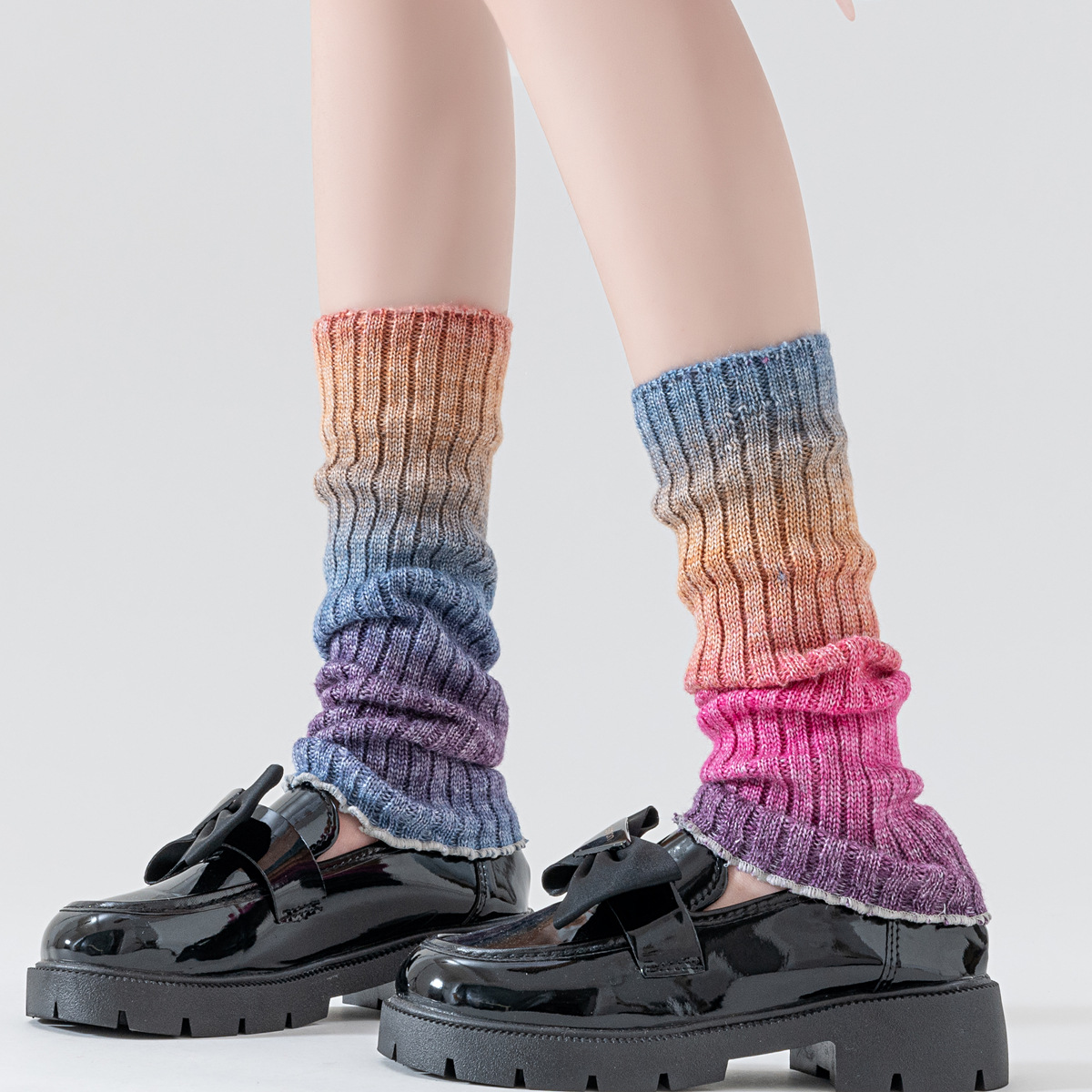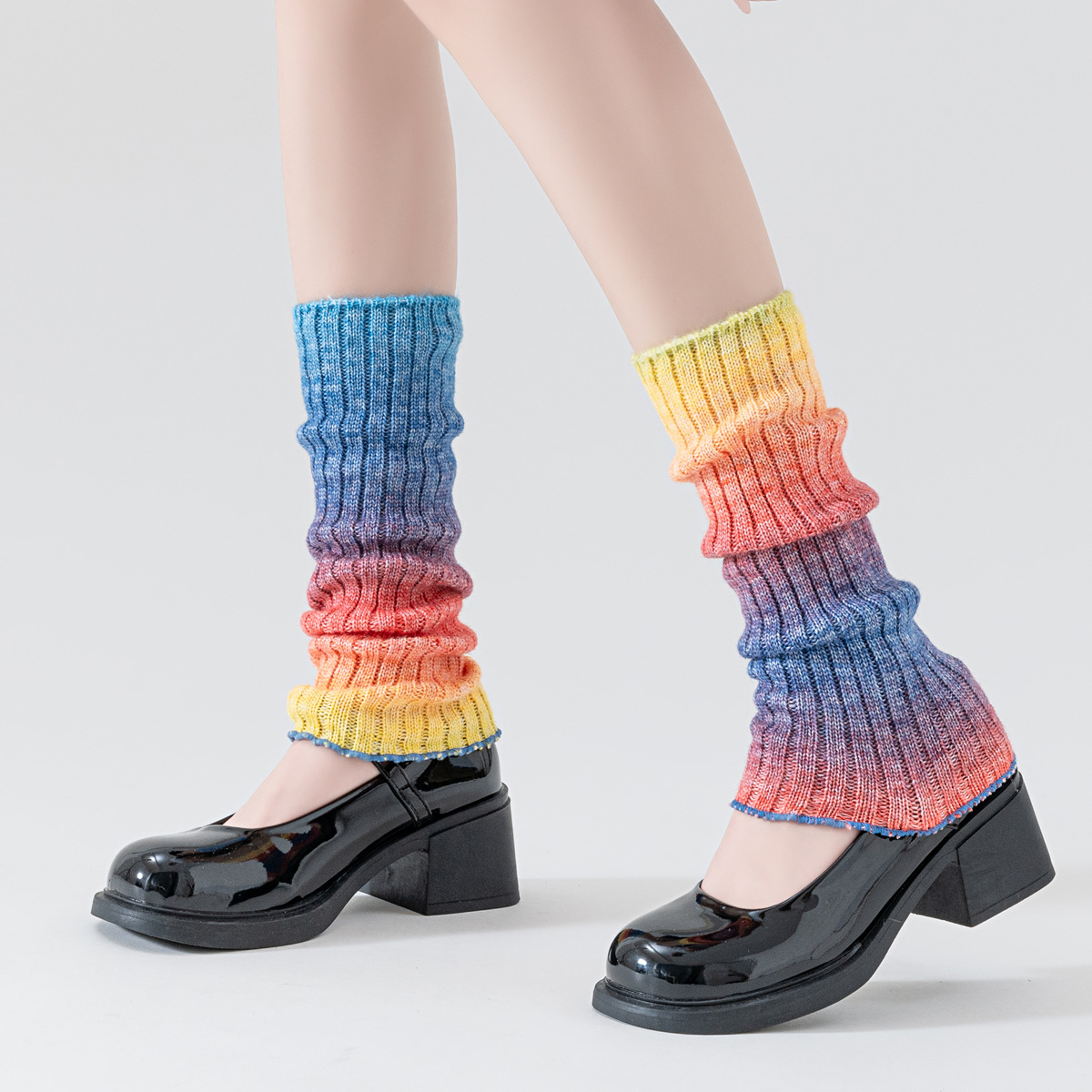 그라디언트 양모 더미 소매 양모 니트 두꺼운 따뜻한 팔 커버 레인보우 컬러 반 익사 장갑 355스토어 가기