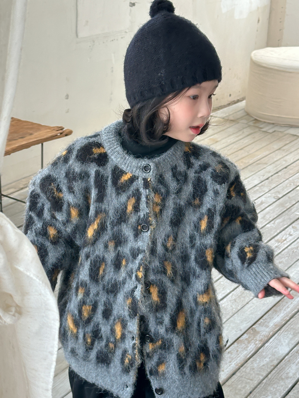 아동용 스웨터 2026 겨울 스타일 여아용 한국 스타일 레오파드 프린트 모직 가디건 아동용 두꺼운 따뜻한 루즈핏 니트 코트
