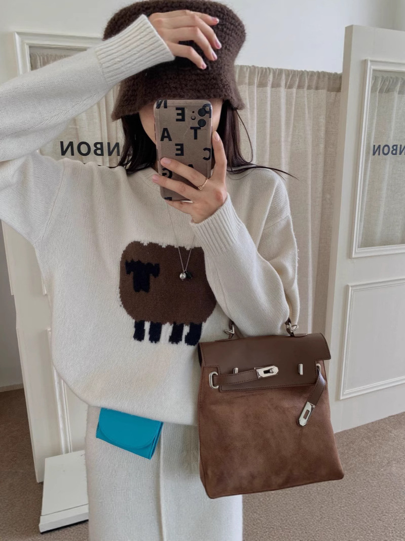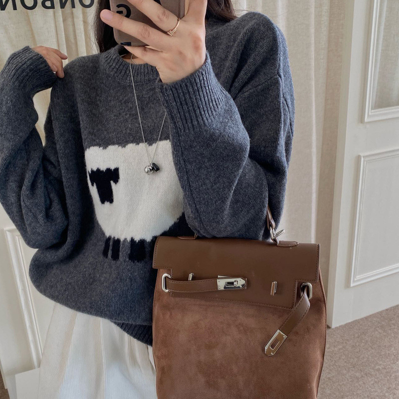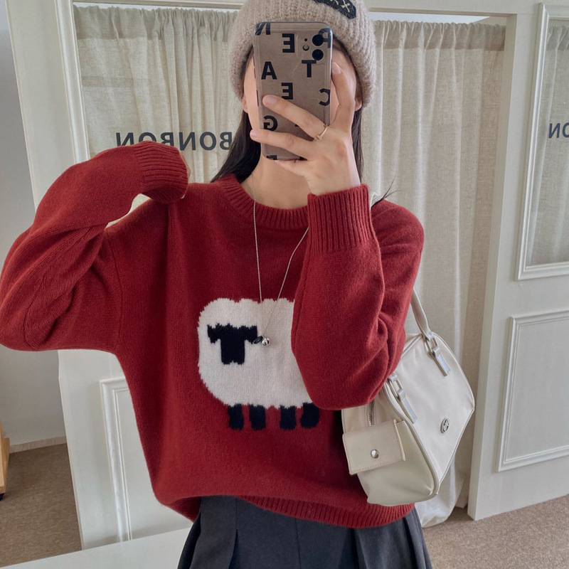 한국 스타일 부드러운 스타일 둥근 목 트위스트 스웨터 여성의 가을 및 겨울 새로운 느슨한 짧은 부드러운 왁스 니트 탑 작은 여성스토어 가기