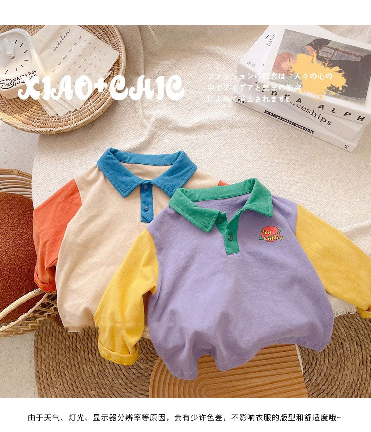 Ins 독특한 색상 대비 ~ 한국어 버전의 어린이 POLO 셔츠면 긴팔 티셔츠 아기 봄과 가을 조끼 봄과 가을 얇은스토어 가기