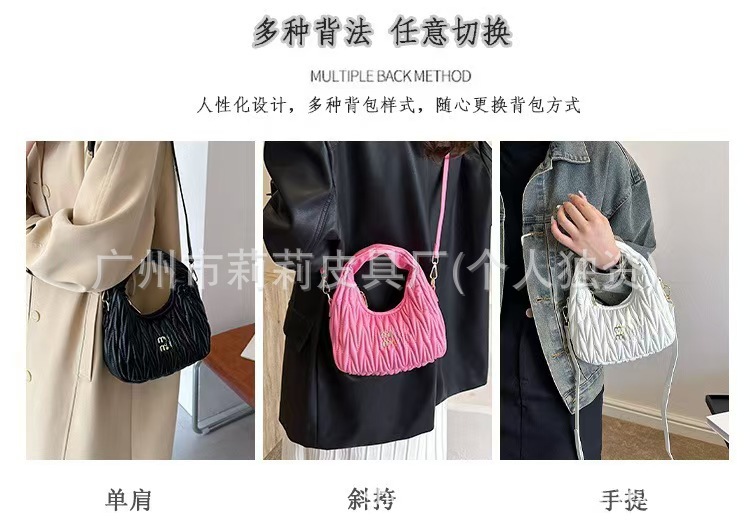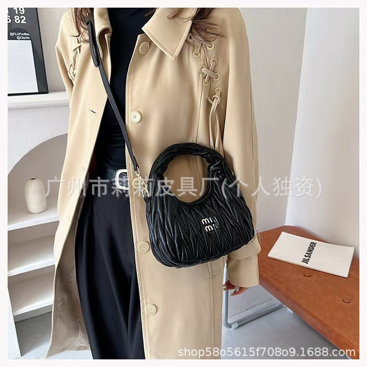 고급형 크로스보더 MIU 신상 크로스백 여성용 주름 볼링백 핸드백 클라우드백 숄더백