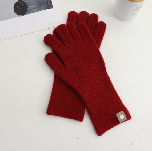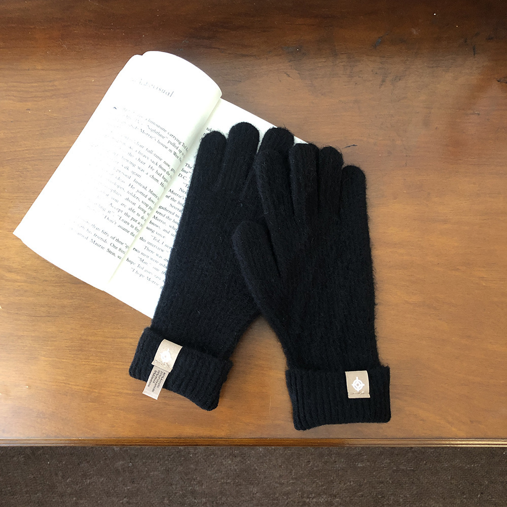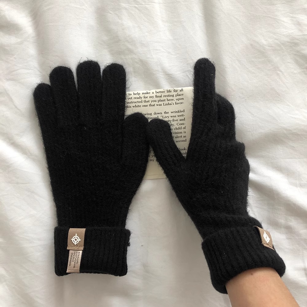 양모 5-손가락 장갑 단색 양모 니트 라벨 장갑 손가락 손가락 터치 스크린 냉간 하라주쿠 가을과 겨울